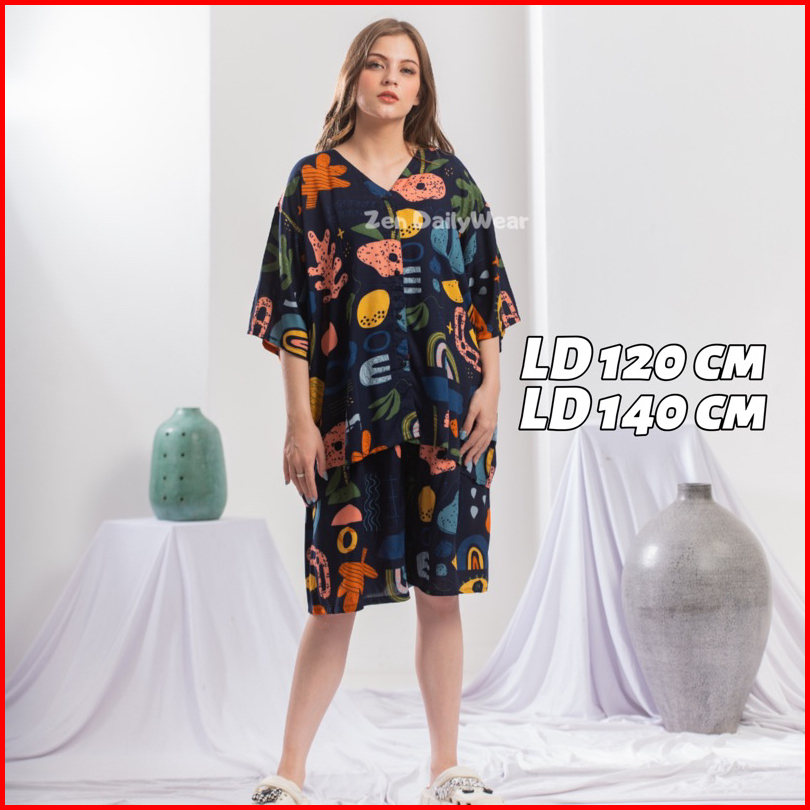 Ld 120 Dan 140 A - Z Baju One Set Wanita Setelan Pendek Rayon Premium Super Jumbo