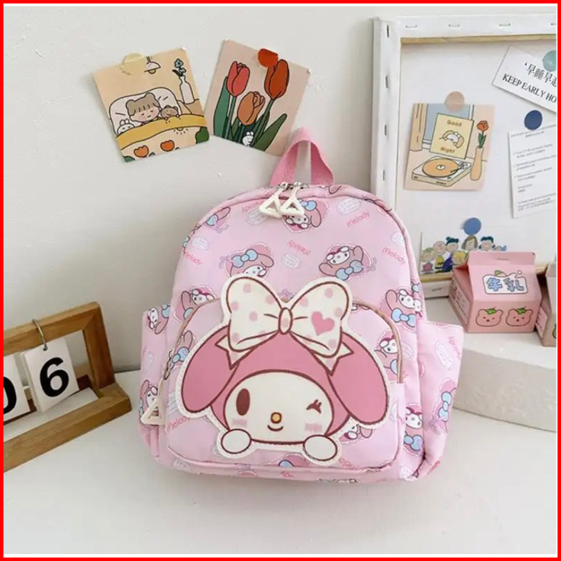 Sanrio Melody Full Print Tas Anak Kuromi Melody Cinnamoroll Hellokitty Kartun Lucu Anak Laki-laki Dan Perempuan Penguran