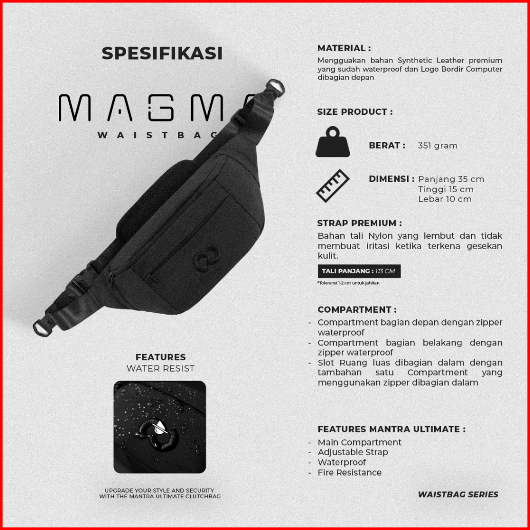 Culture Basic Magma Waistbag Tas Selempang Pria Tas Pinggang Hitam Polos Multifungsi Kado Pasangan