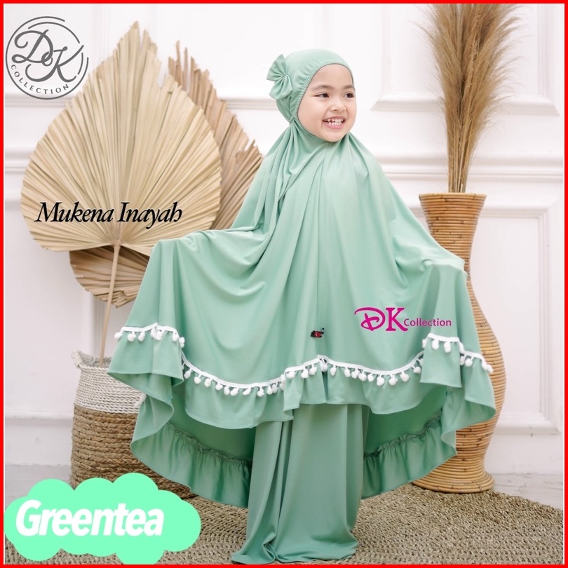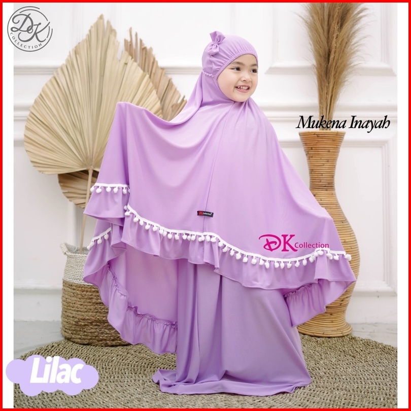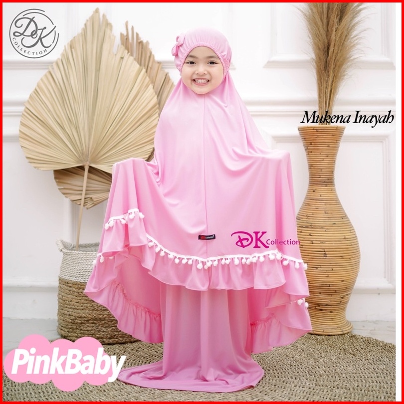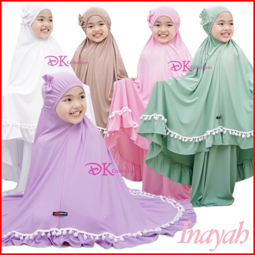 Mukena Anak Inayah Lucu Dengan Pompom Dan Pita
