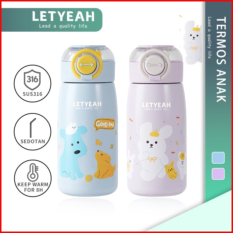 Sus 316 304 Letyeah Termos Air Panas Anak Botol Minum Stainless 304 316 Vacuum Flasks Sedotan 470ml