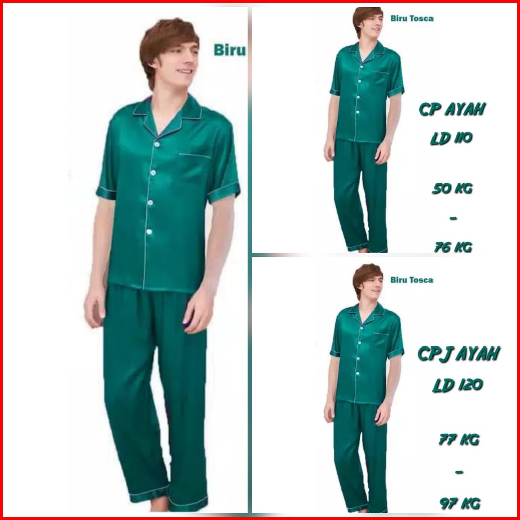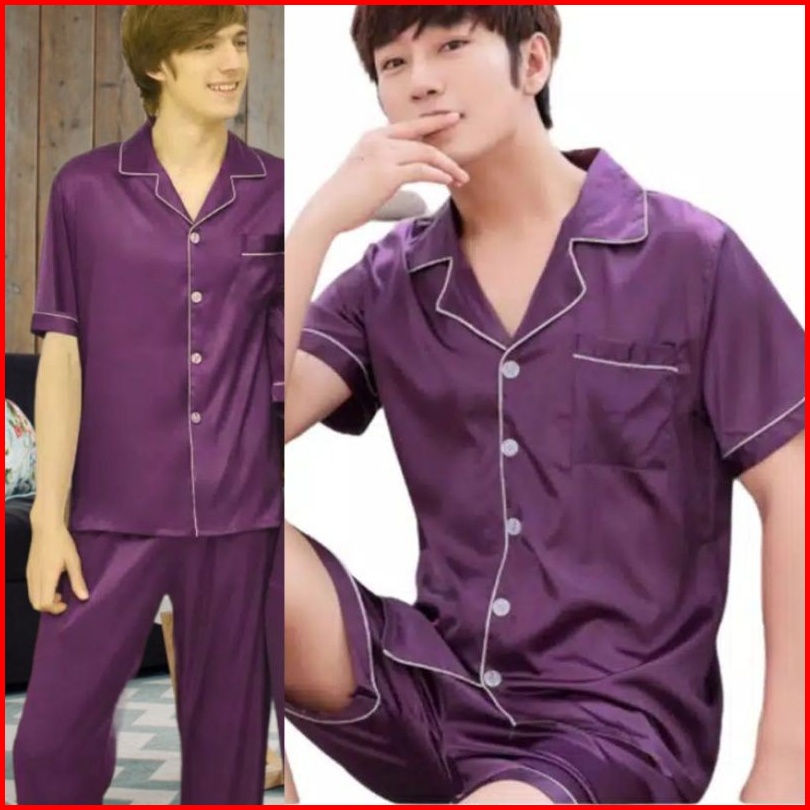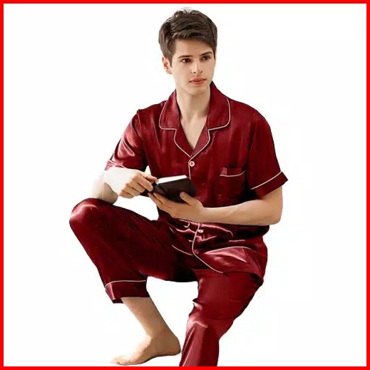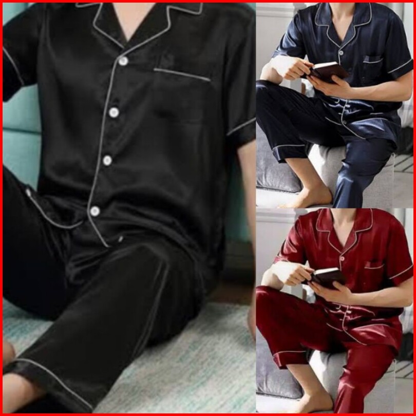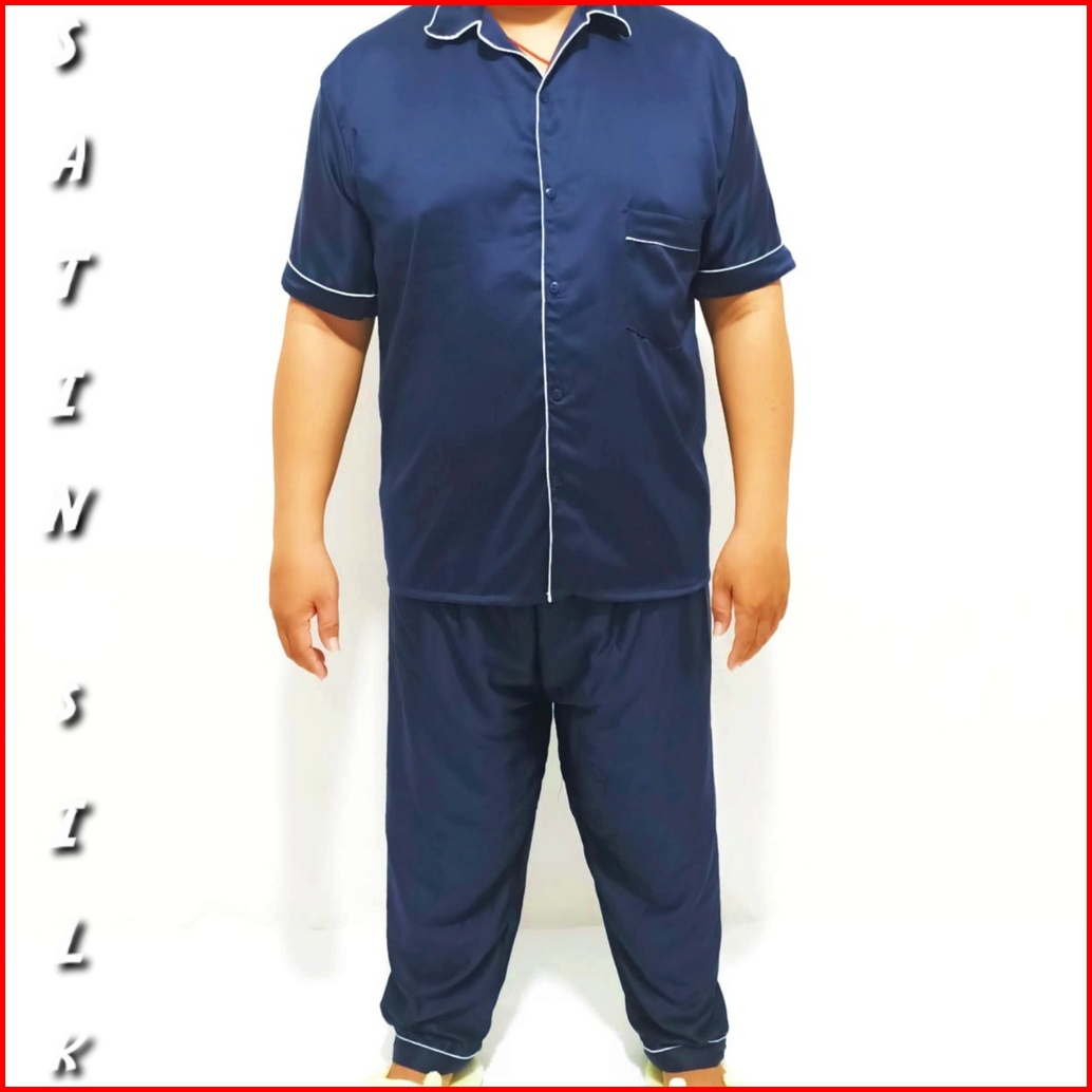Piyama Pria Dewasa Cp Celana Panjang Lengan Pendek Baju Tidur Cowo Satin Piyama Jumbo Polos