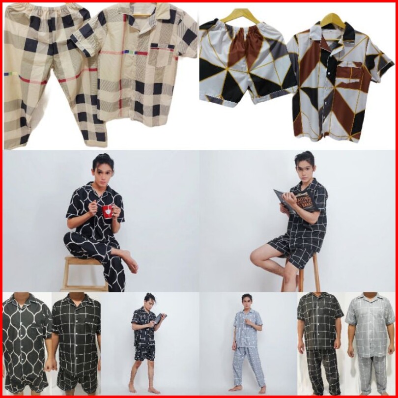 Piyama Cowok Jumbo Celana Panjang Dan Pendek Setelan Baju Tidur Pria Dewasa Big Size Ld 130 140 Set