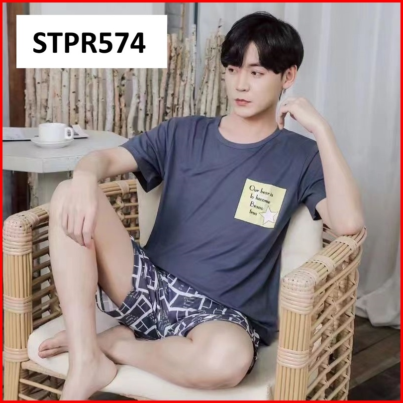 Baju Tidur Pria Lengan Pendek Celana Pendek Motif Polos