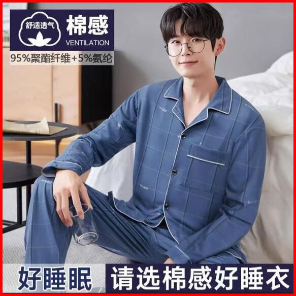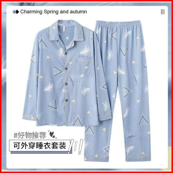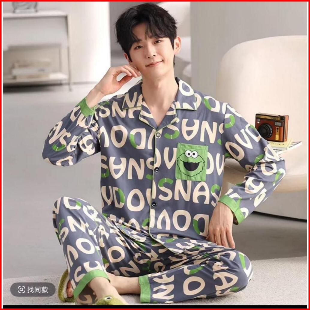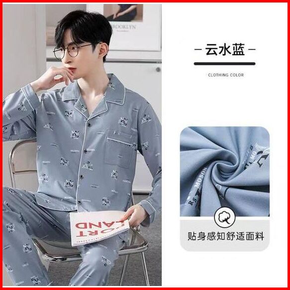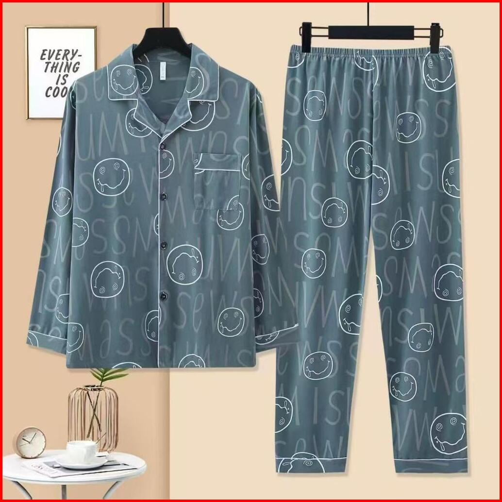 Pajamas Piyama Pria Cowok Lengan Panjang Celana Panjang Katun Import Premium Motif Kancing Krah Big Size L-3xl New Arriv