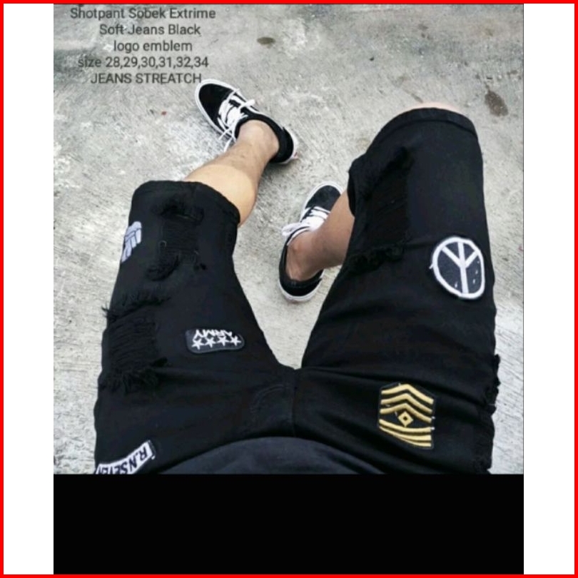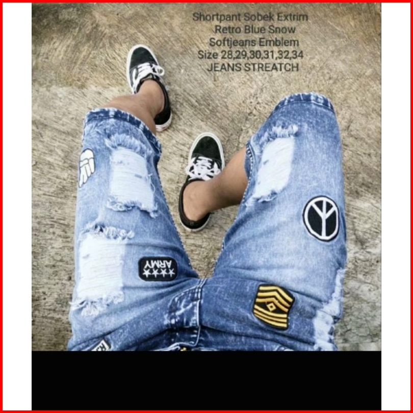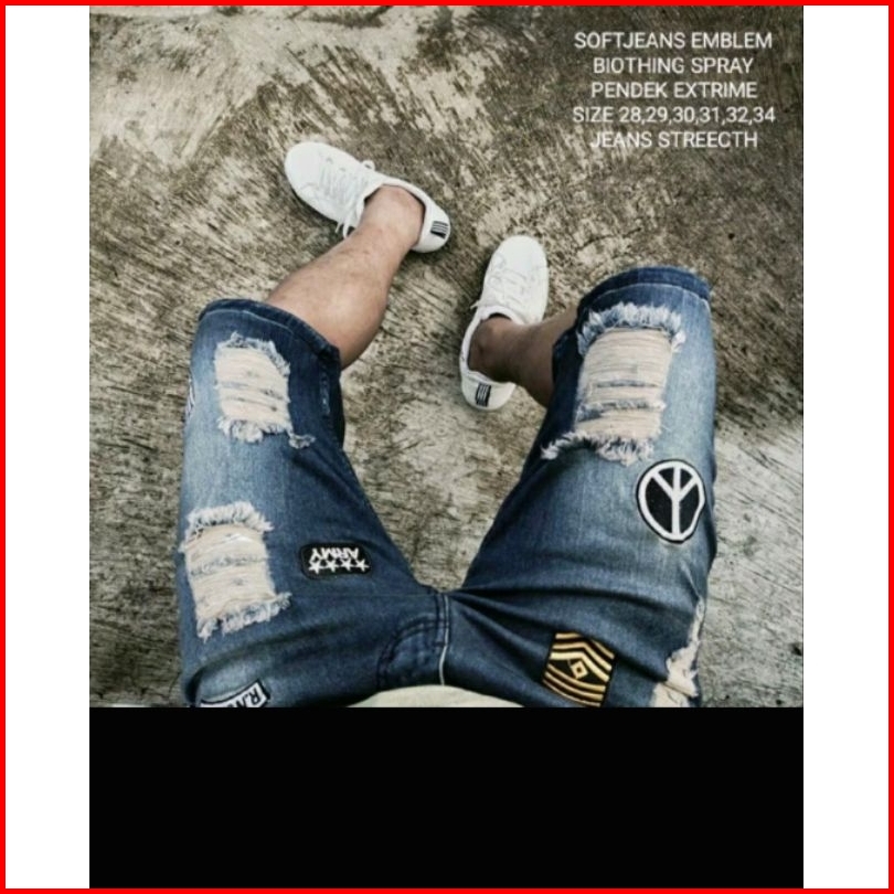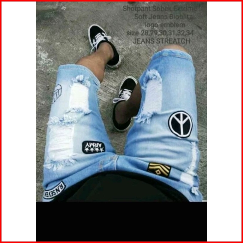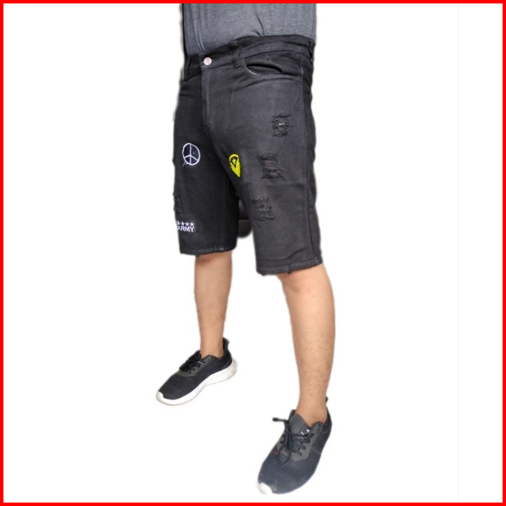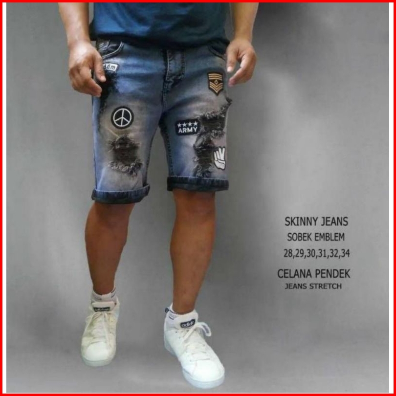Celana Jeans Pendek Pria Distro Ripped Bahan Melar