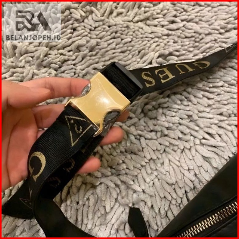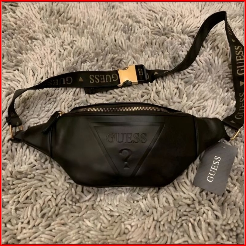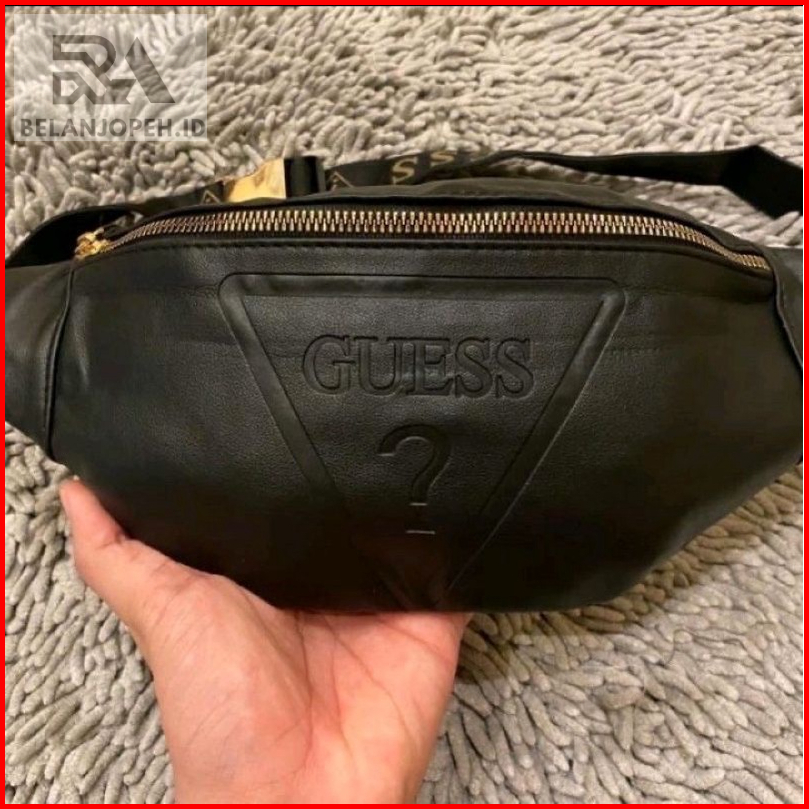 Anti Air High Quality Waistbag Guess Black Import Waterproof Unisex Tas Pinggang Kulit Waist Bag Cowok Cewek Tas Guess C