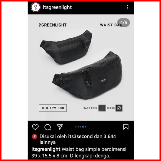 Tas Waistbag Waist Bag 3second Greenlight Original Slingbag