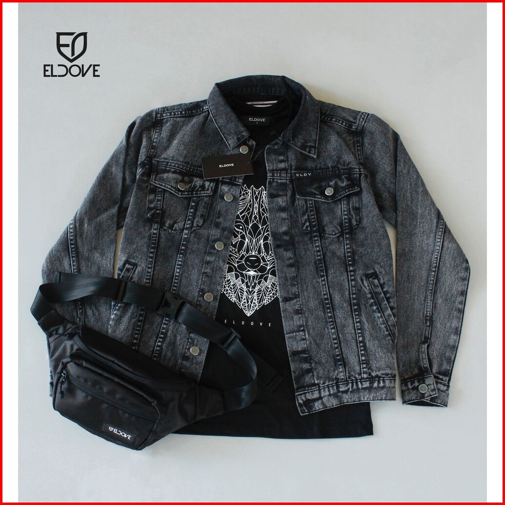 Eldove Paket Jacket Denim Kaos Waistbag 9504