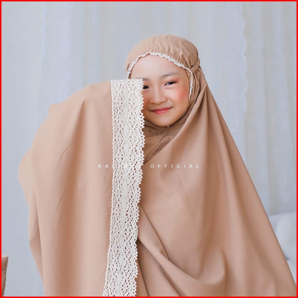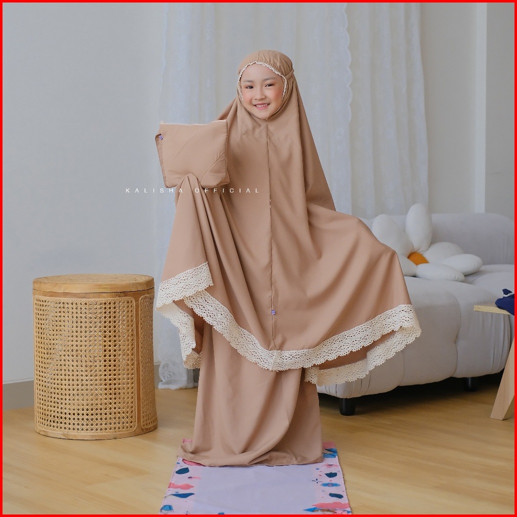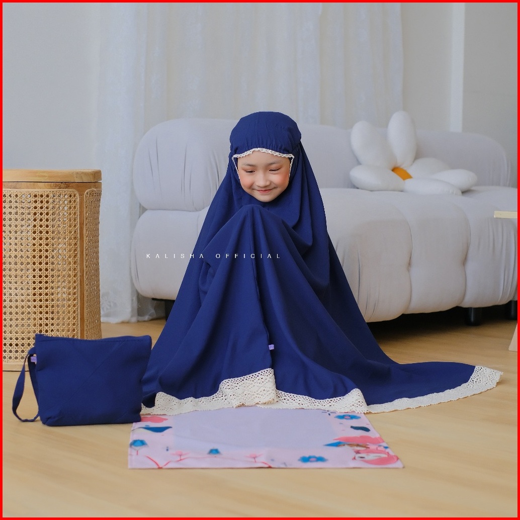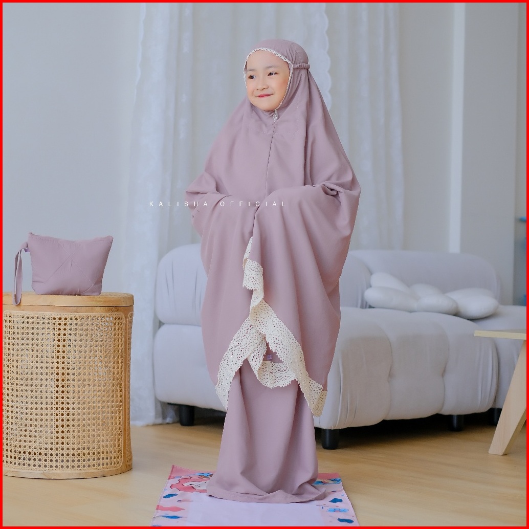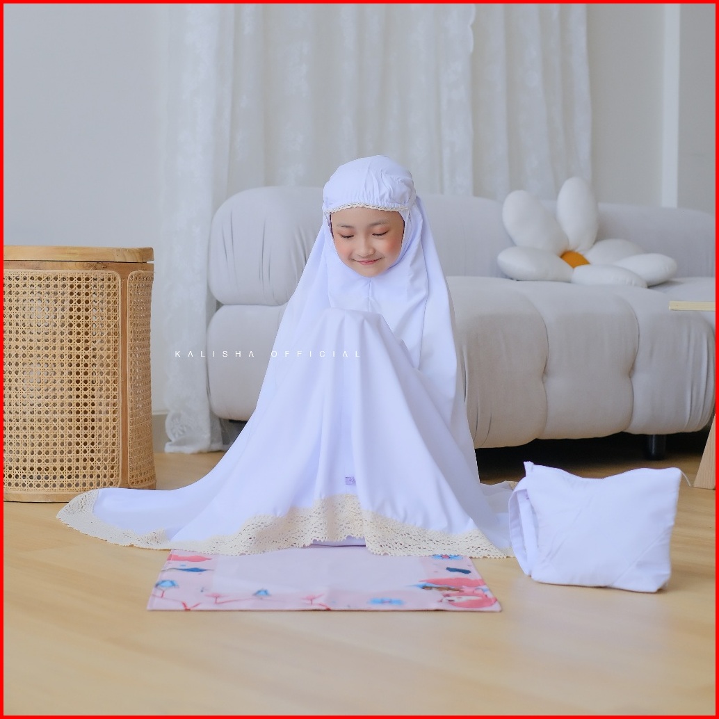 Mukena Anak Basic Polos Renda Rajut Katun Polimicro Adeela Mukena Adara Anak Free Pouch Tas By Kalishaofficial