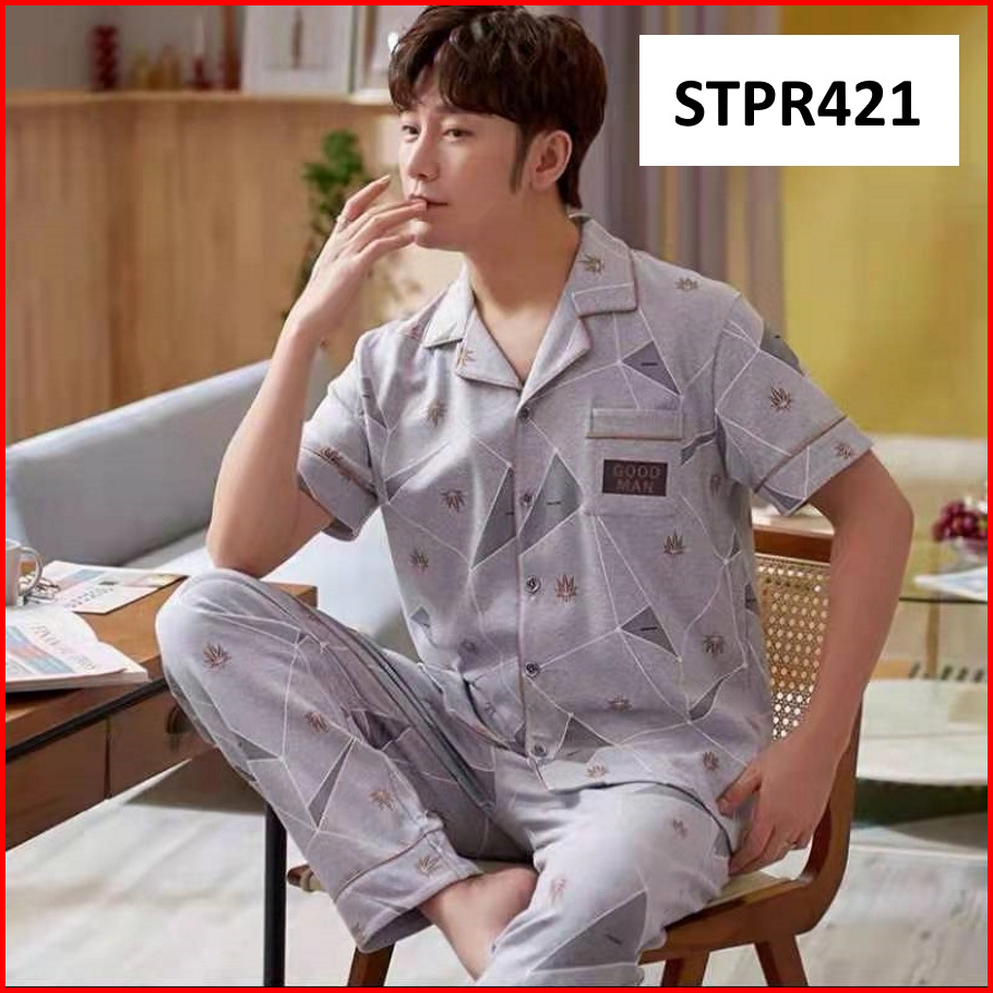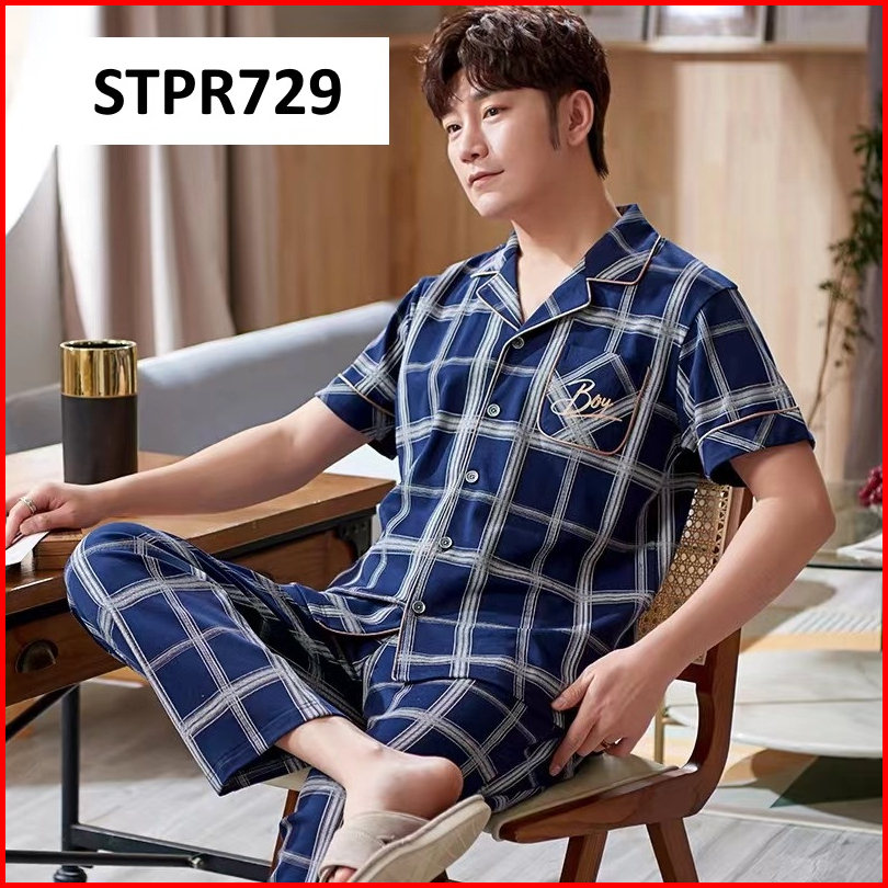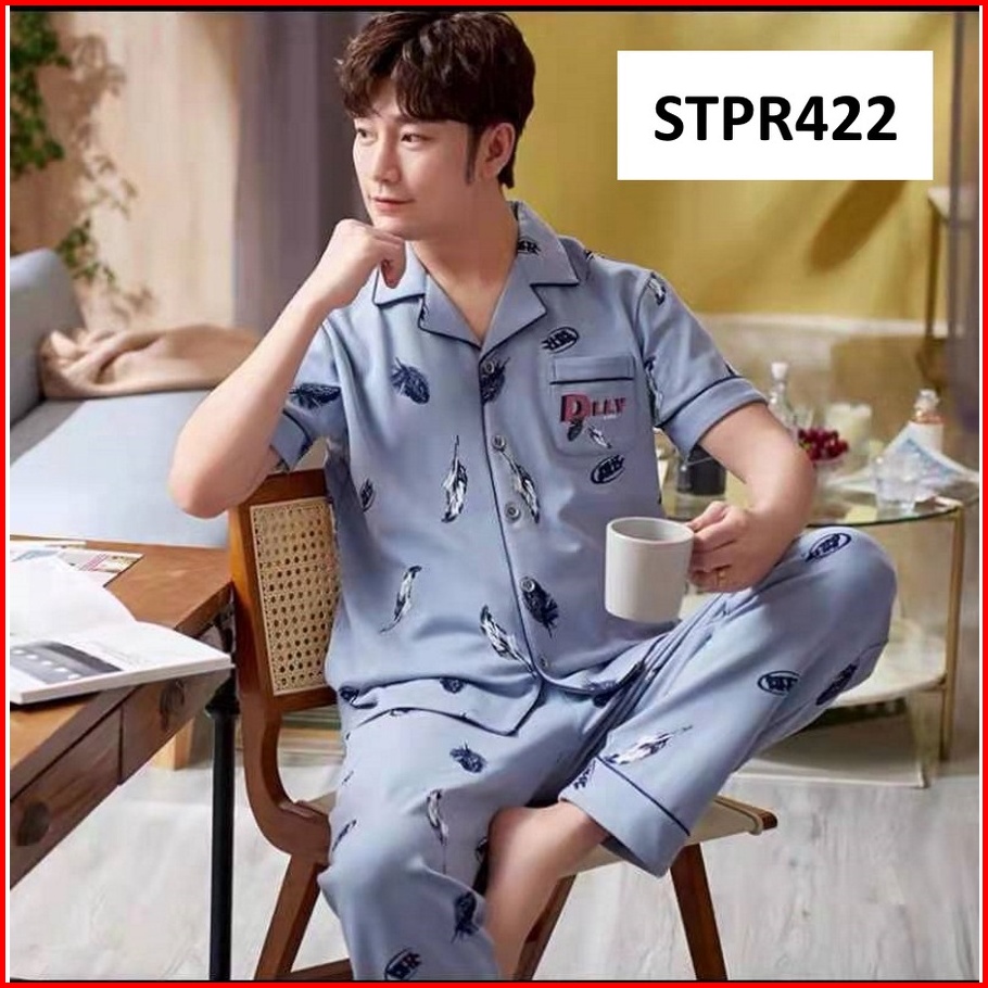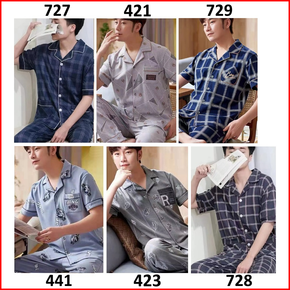 Piyama Pria Setelan Piyama Laki Lengan Pendek Celana Panjang Model Kancing Depan