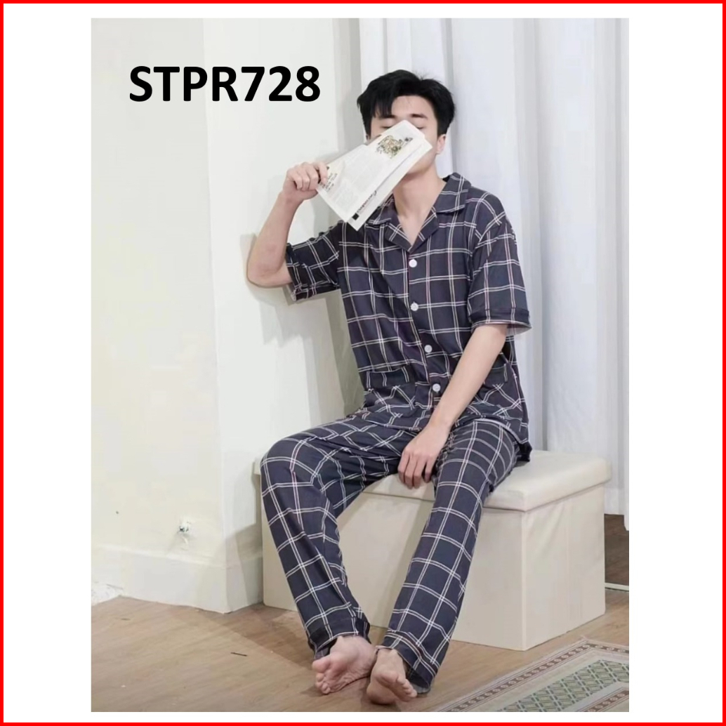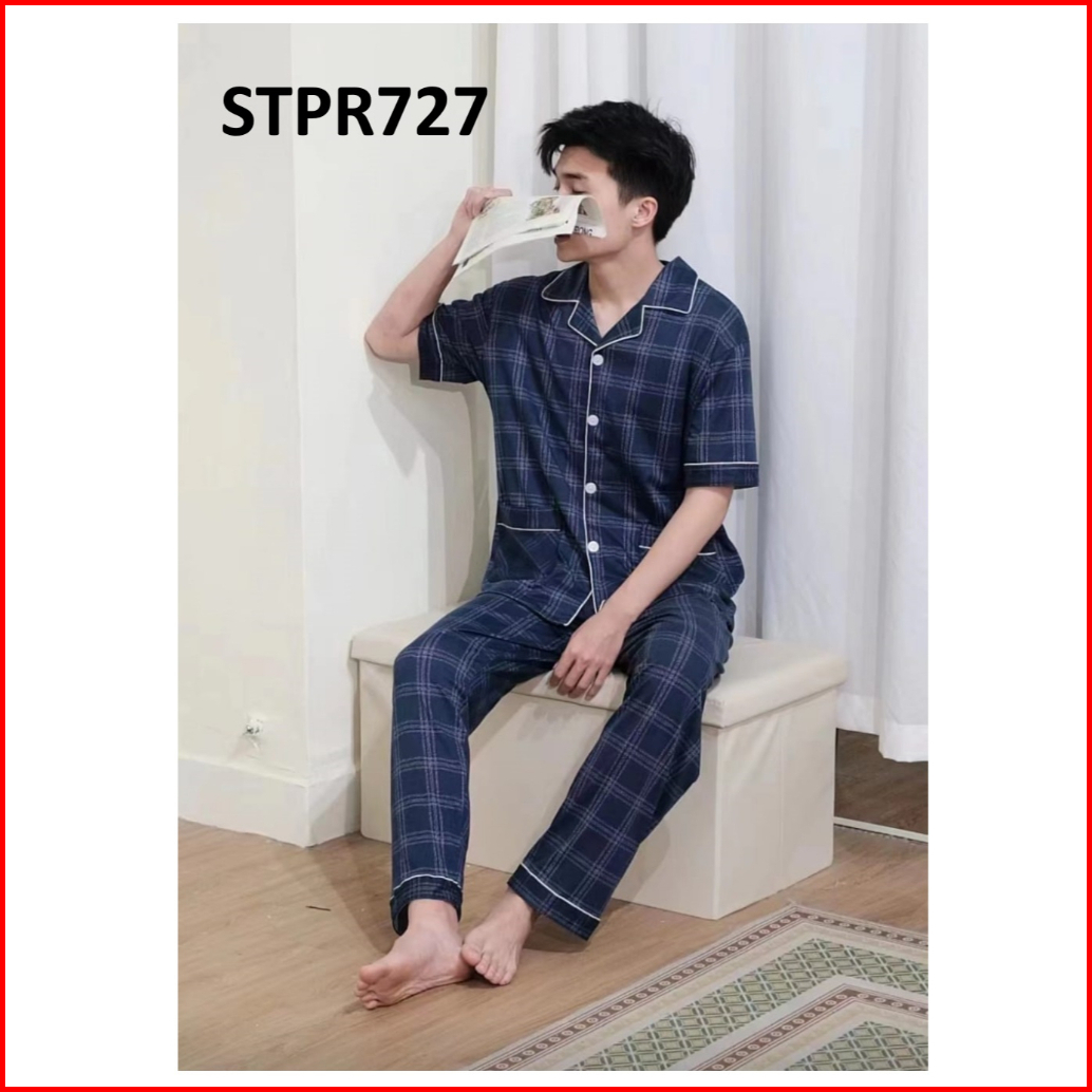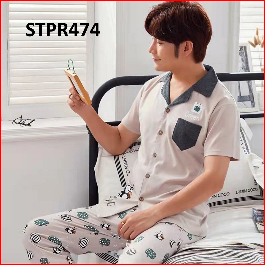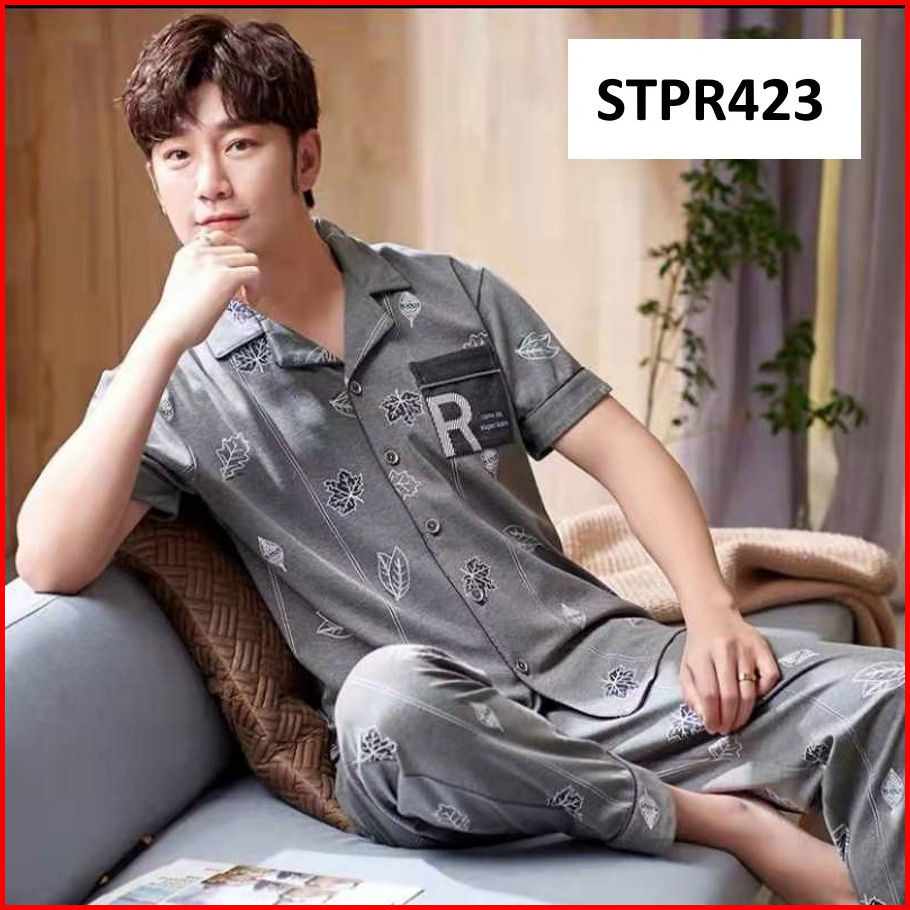 Piyama Pria Setelan Piyama Laki Lengan Pendek Celana Panjang Model Kancing Depan