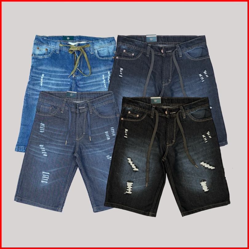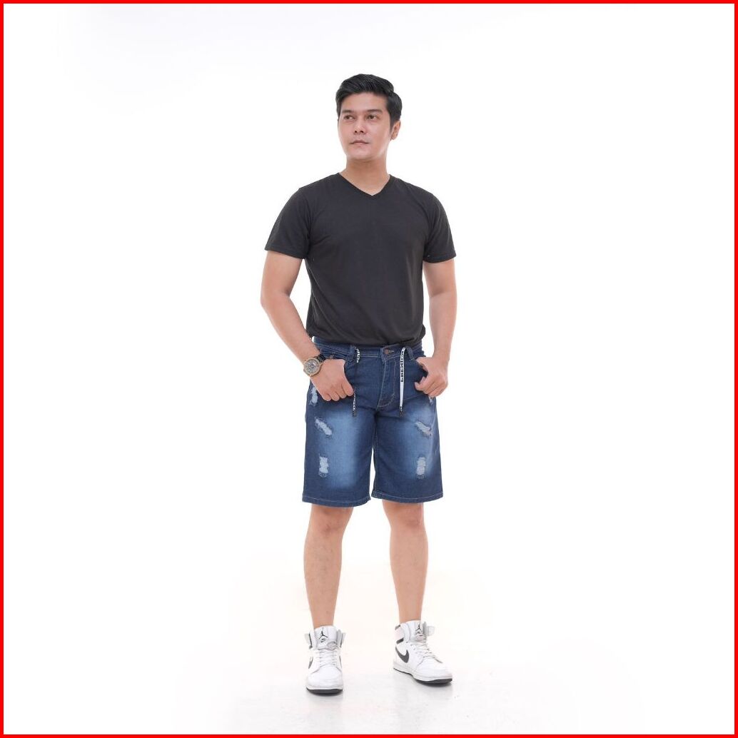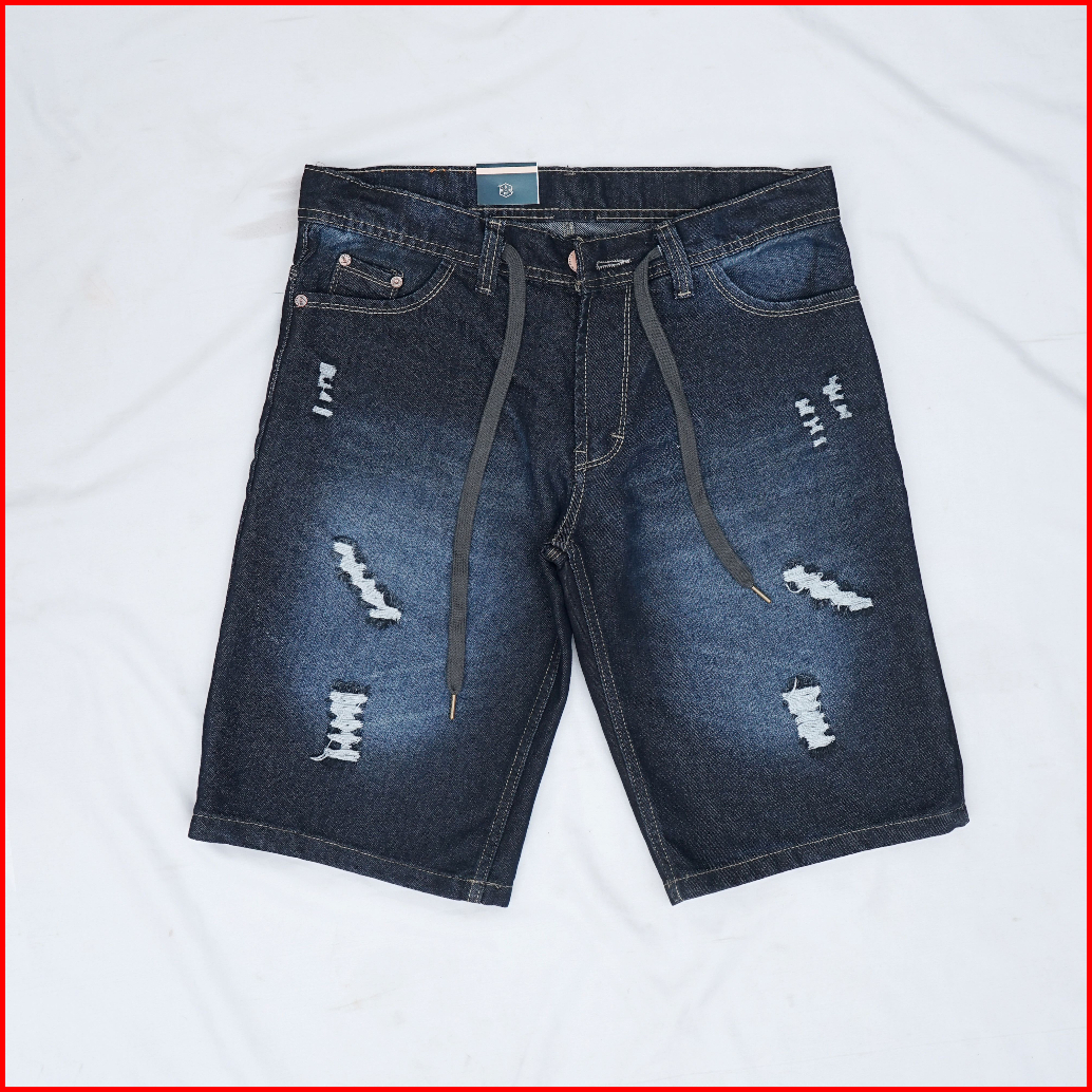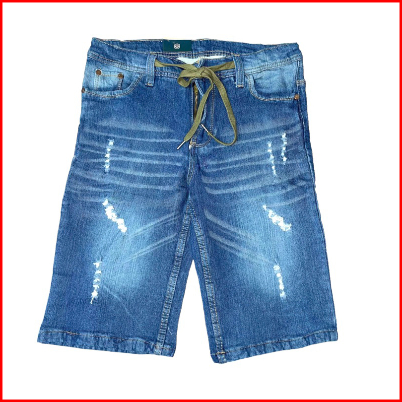 Celana Pendek Jeans Sobek Pria Tali Pinggang Ukuran 27-38