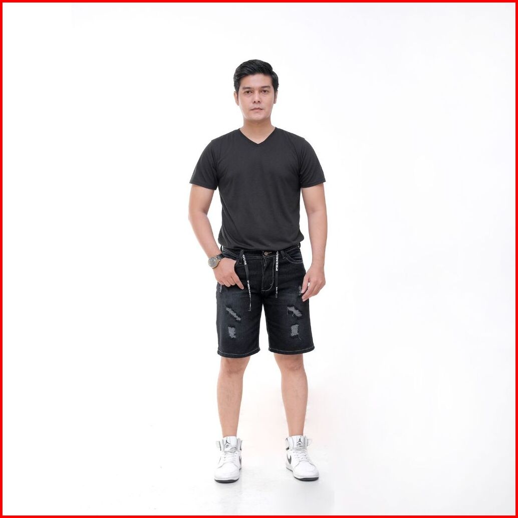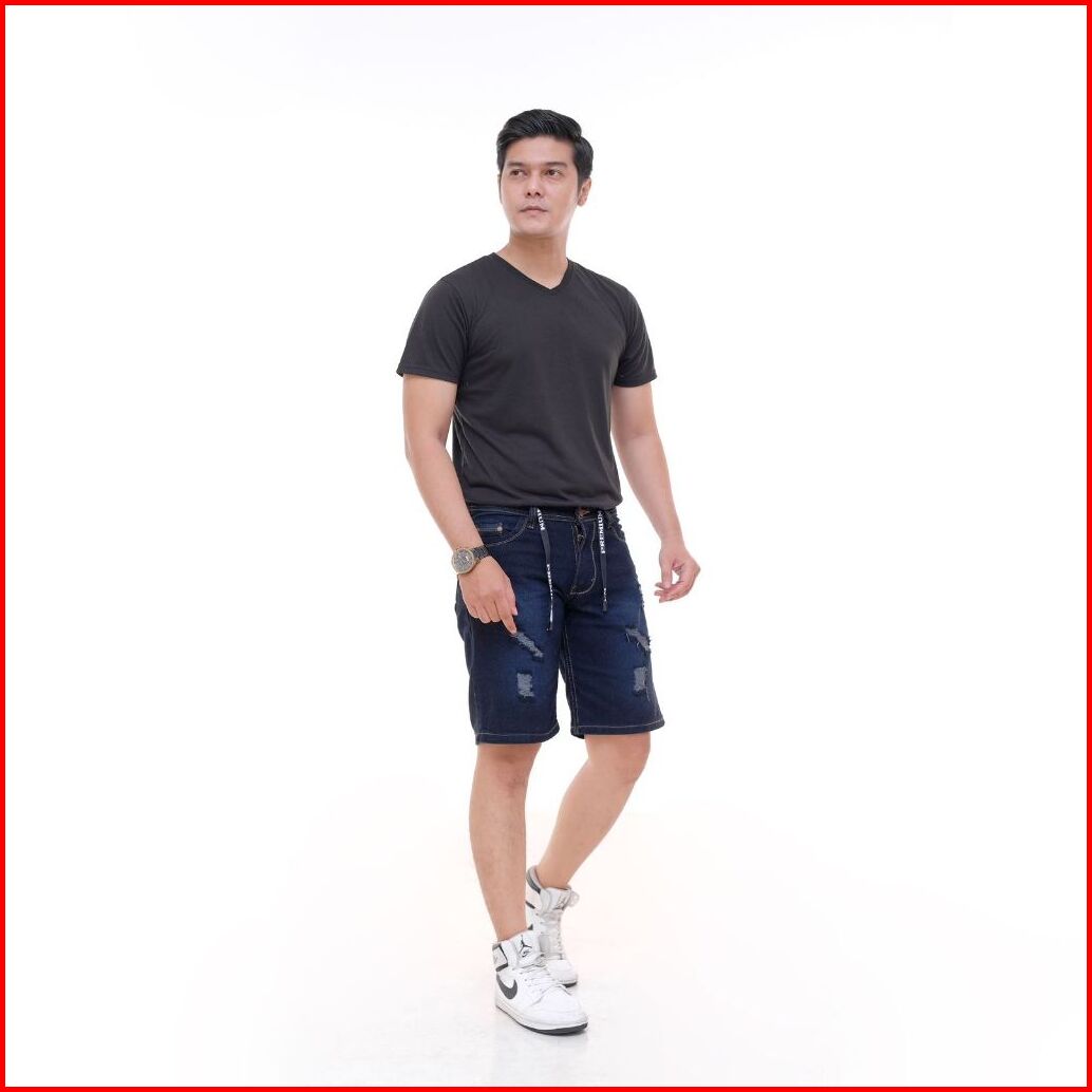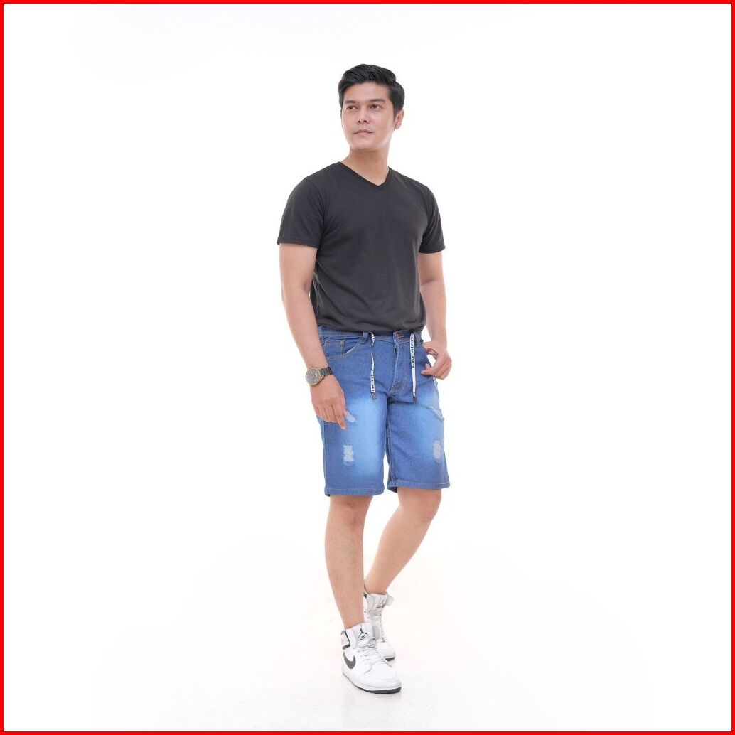 Celana Pendek Jeans Sobek Pria Tali Pinggang Ukuran 27-38
