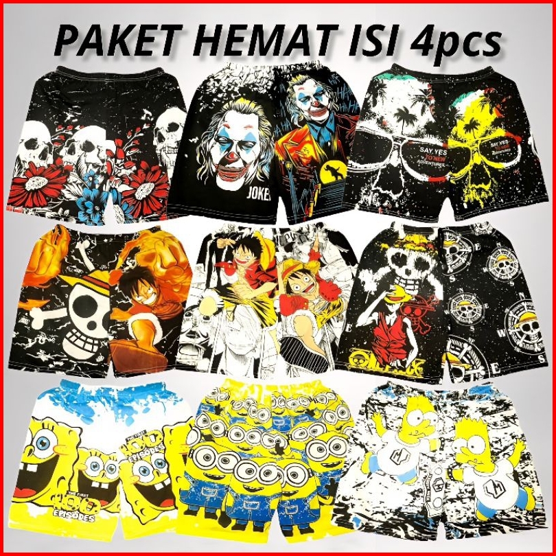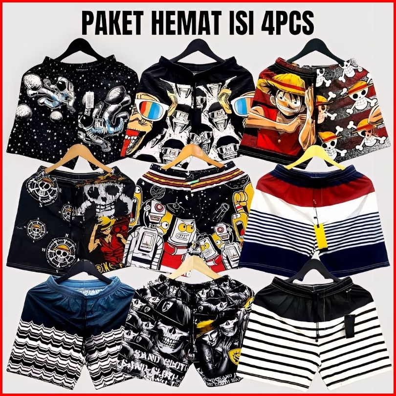 Paket Hemat 4pcs Celana Pendek Pria Wanita Boxer Motif Best Seller Boxer Distro Boxer Dewasa