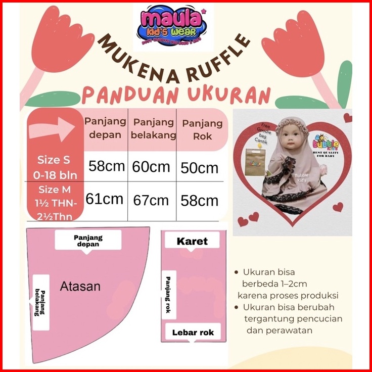 Egsus Mukena Anak Mukena Bayi Ruffle Mukena Baby Size 3 Bln -3 Tahun Bahan Adem