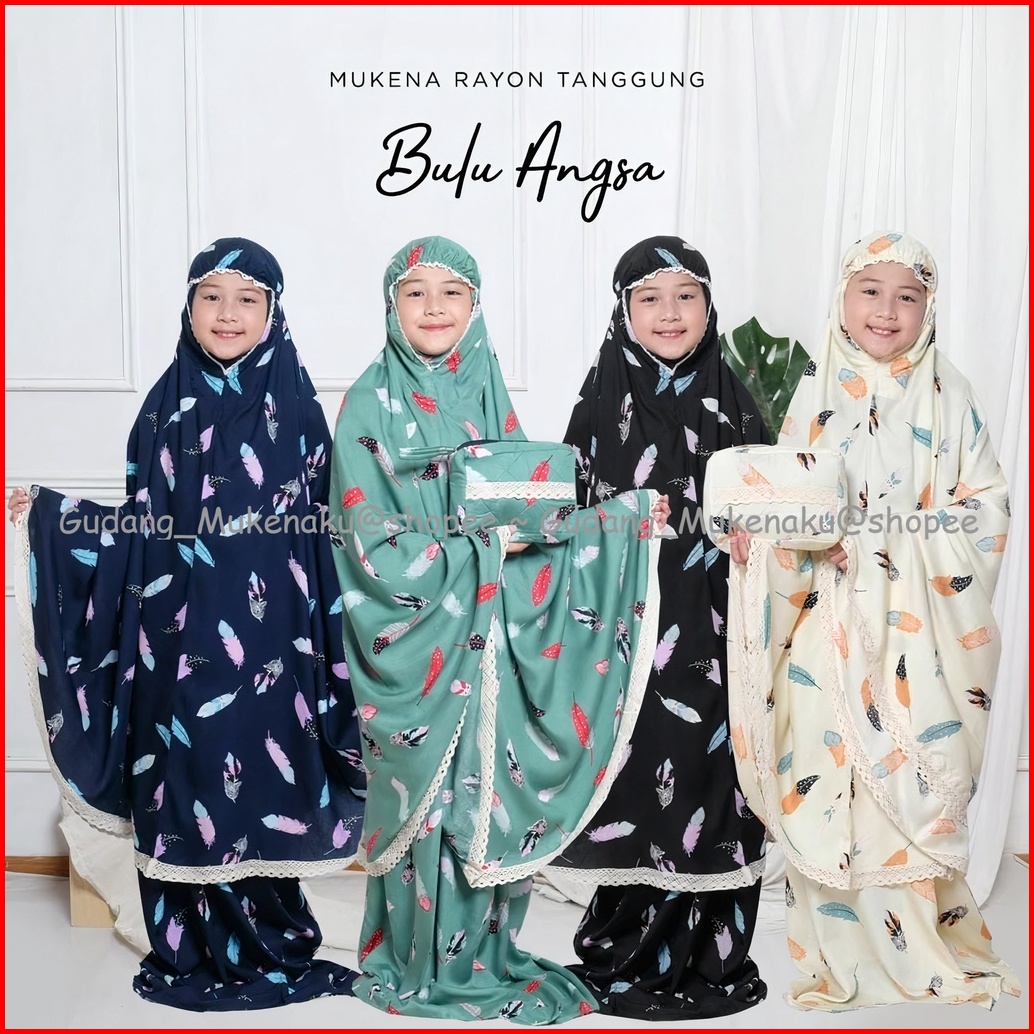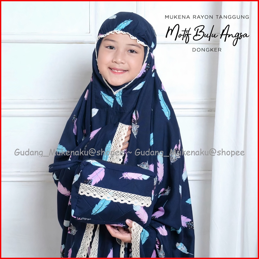 Mukena Anak Tanggung Est 8-12th Motif Printing Bulu Angsa Renda Rajut Bahan Rayon Free Tas