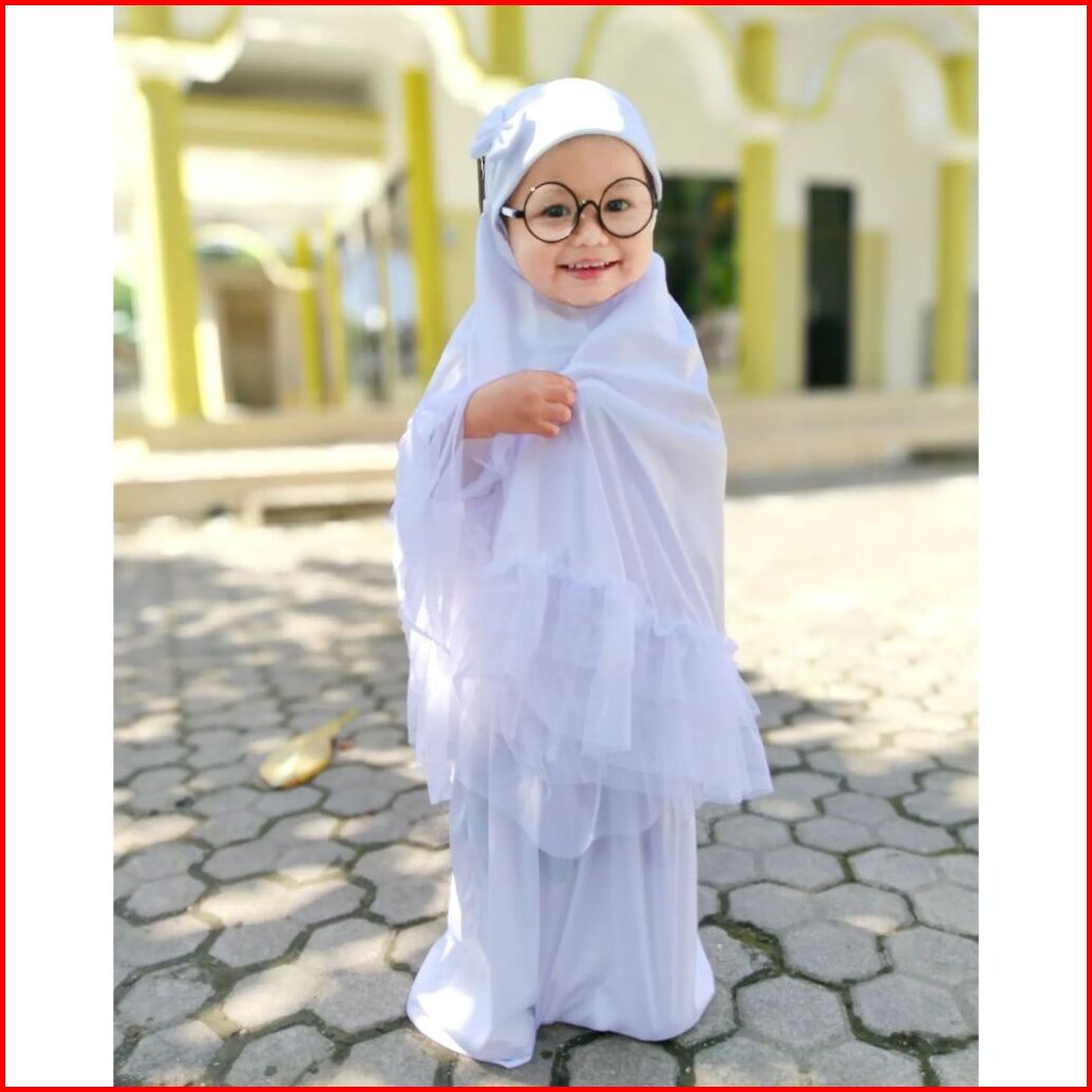 Sitistory - Mukena Anak Perempuan Tk Sd Usia Umur 1 2 3 4 5 6 7 8 Tahun Polos Pita Renda Kopel Putih