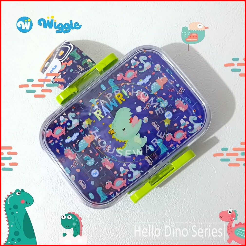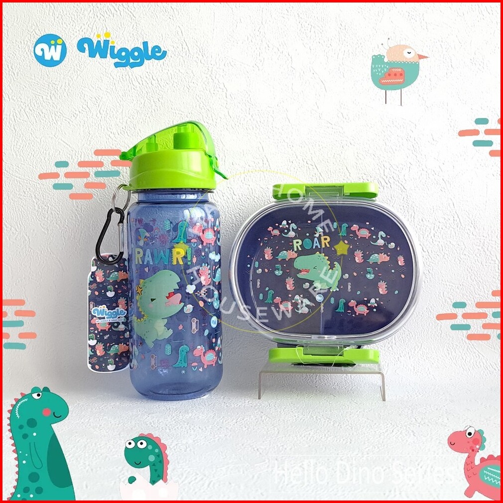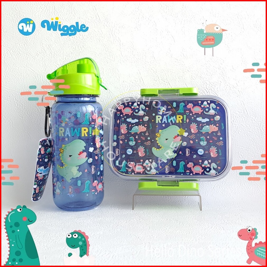 Wiggle Paket Set Kids School Hello Dino Blue Kotak Bekal 750ml Botol Minum 670ml