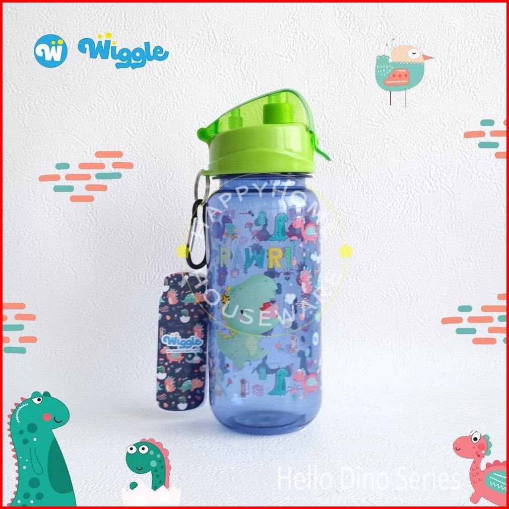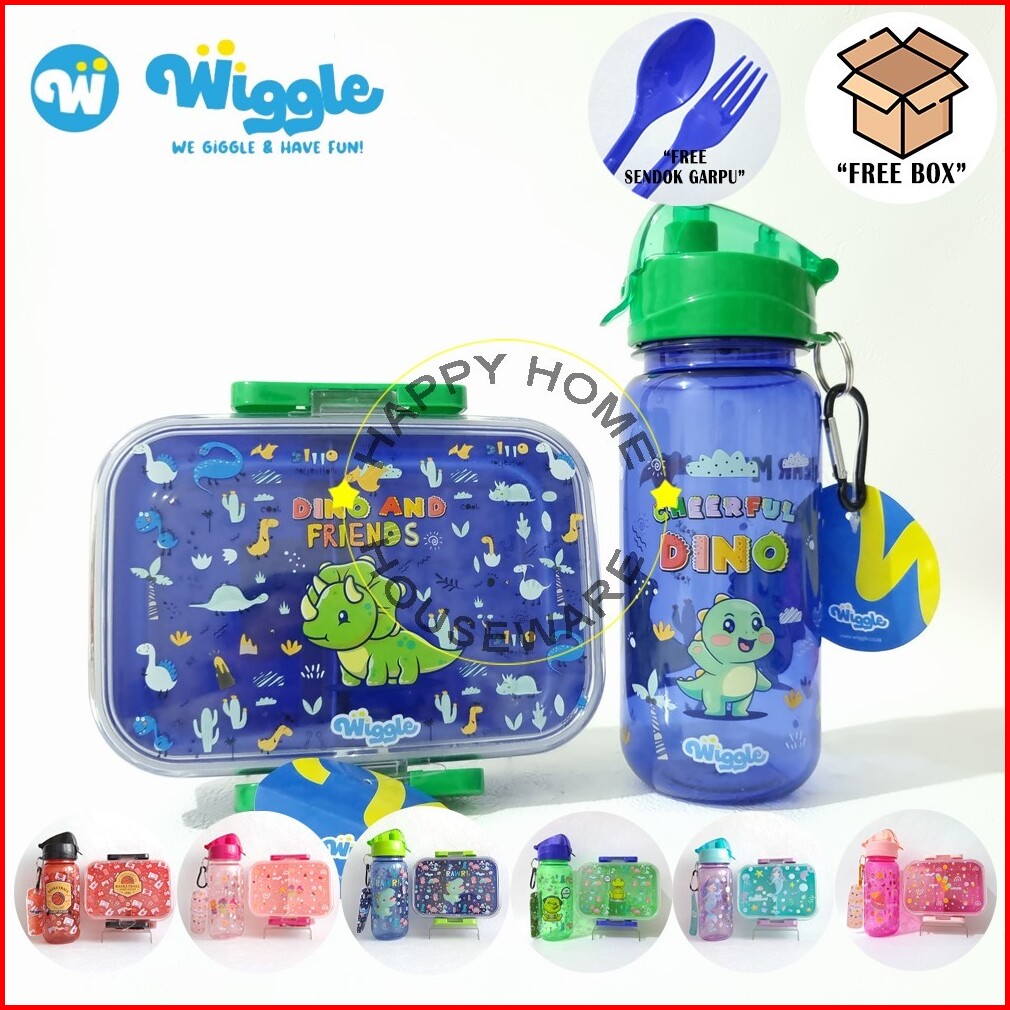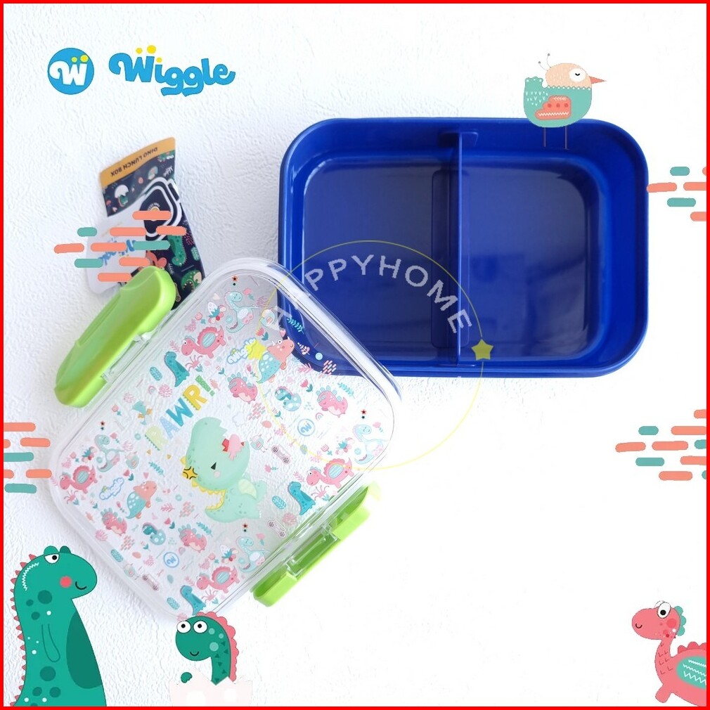 Wiggle Paket Set Kids School Hello Dino Blue Kotak Bekal 750ml Botol Minum 670ml