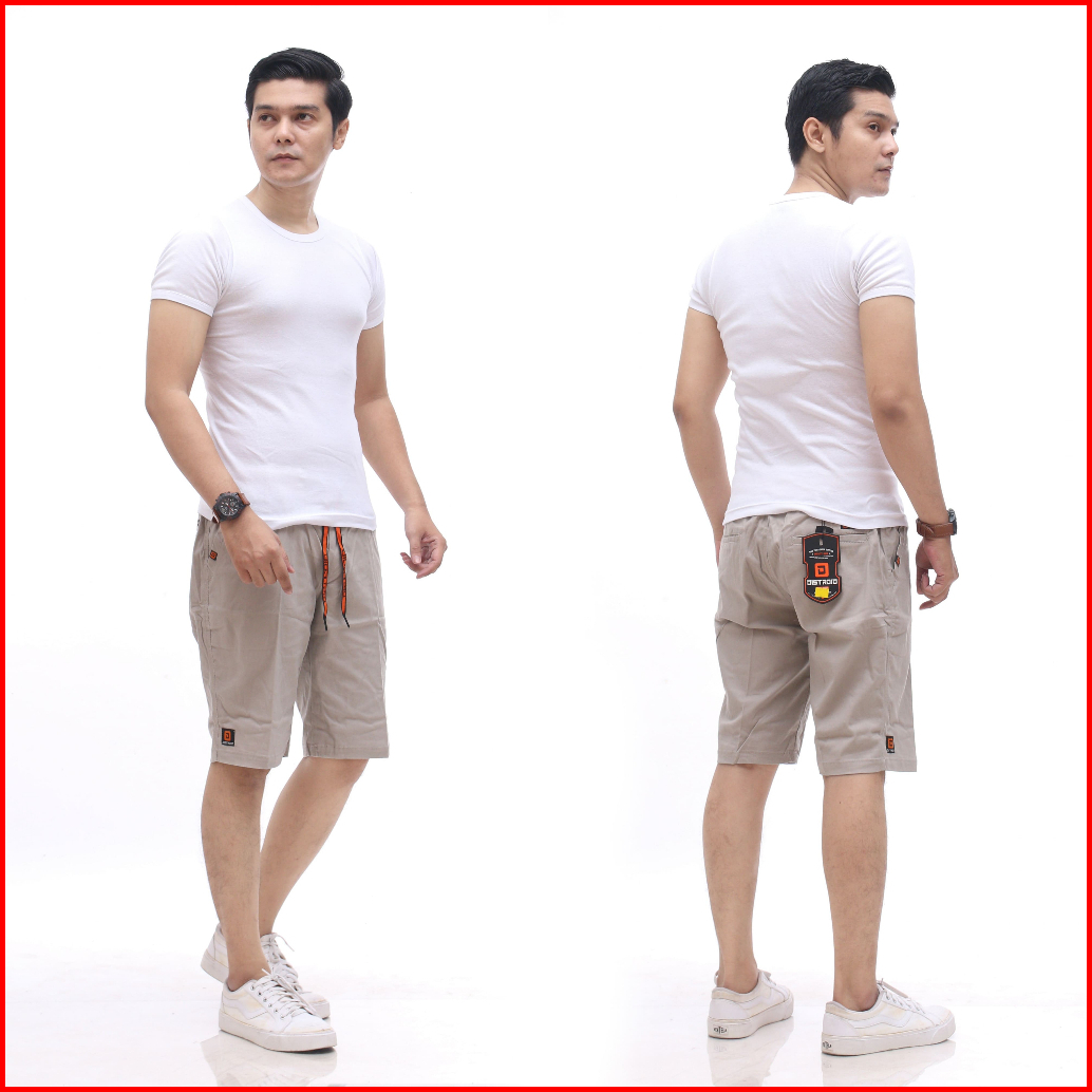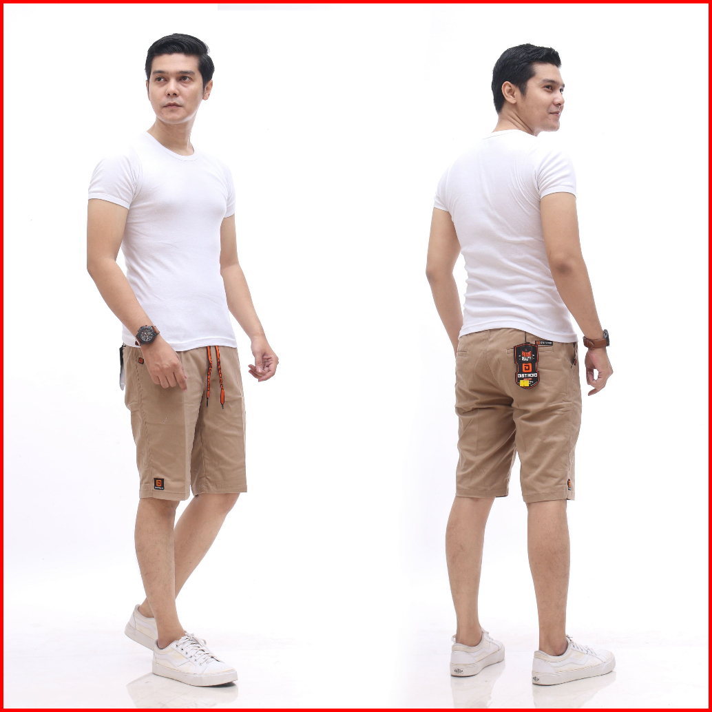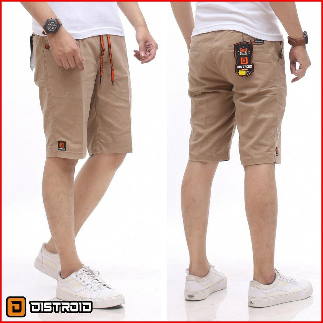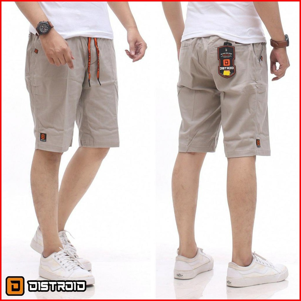 Distroid Celana Chino Rib Pendek Pria Chinos Katun Melar Cowok Dewasa Pinggang Karet