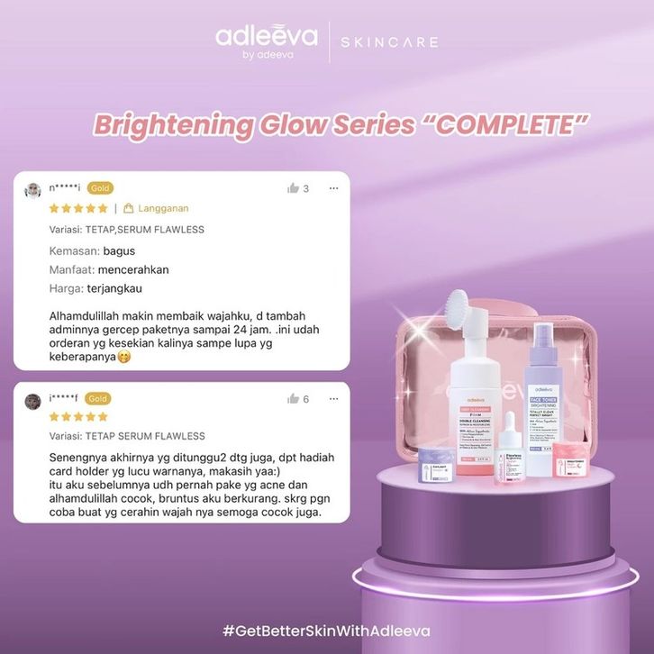 ADLEEVA Official - Paket Hemat Skincare Whitening Glow Booster Series “COMPLETE” (Paket Isi 5) BPOM