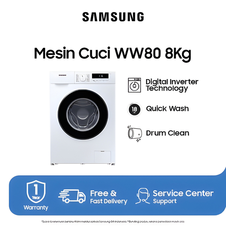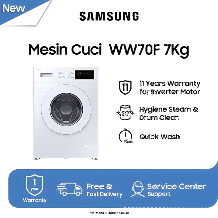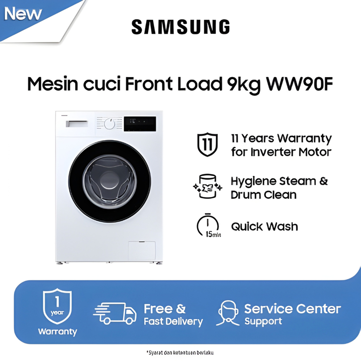 SAMSUNG MESIN CUCI 1 TABUNG FRONT LOADING 9KG 8KG 7KG HYGIENE STEAM DRUM CLEAN DENGAN ECOBUBBLE QUICK WASH AI CONTROL