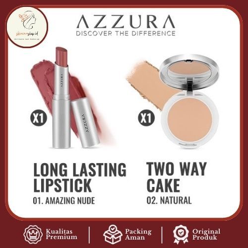Paket Set Azzura Lipstick Azzura Shade 01 Amazing Nude Dan 1 Two Way Cake Azzura Shade 02 Natural Terlaris