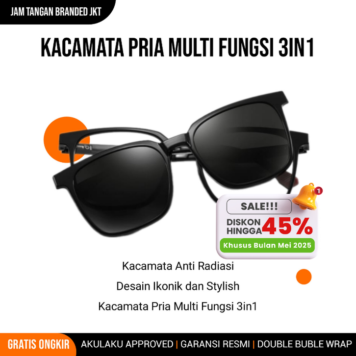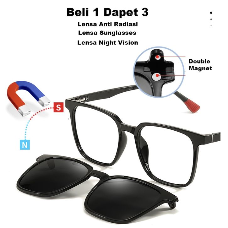 Kacamata Cowok Multi Fungsi 3in1 Kacamata Eye Glass Lensa Normal Kacamata Sunglasses Kacamata Night Vision