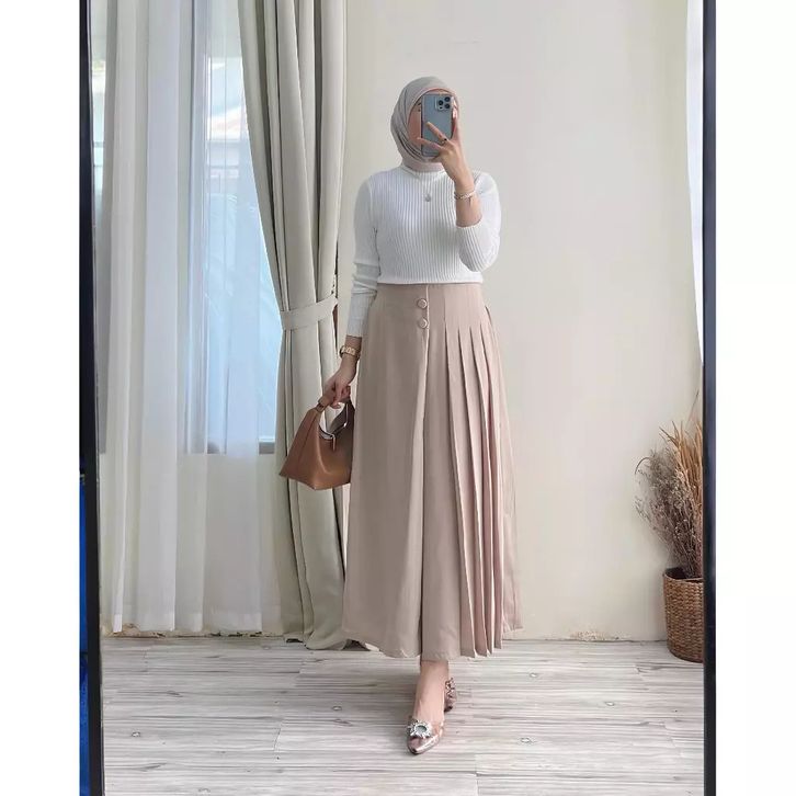 Cellie Kulot Pleats Celana Rok Casual Fit Kulot Highwaist Furano Premium Celana Rok Wanita Kekinian Korea Terbaru
