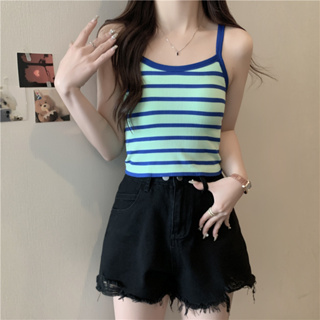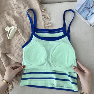Tanktop Bra With Cup Tanpa Kawat Bh Singlet Motif Garis Atasan Wanita Sexy