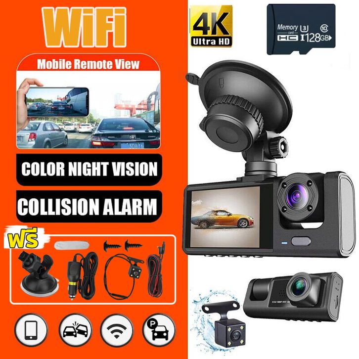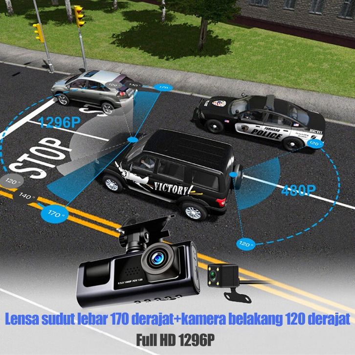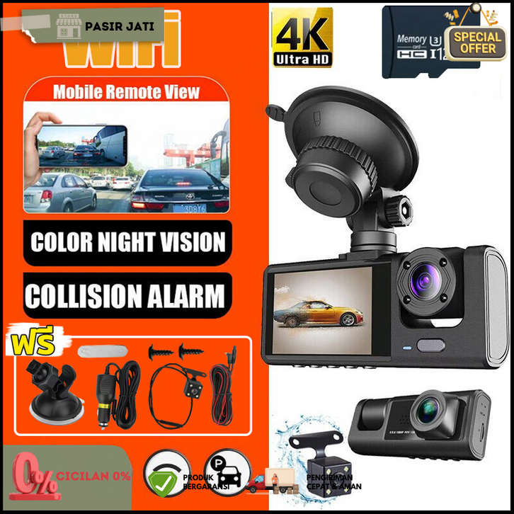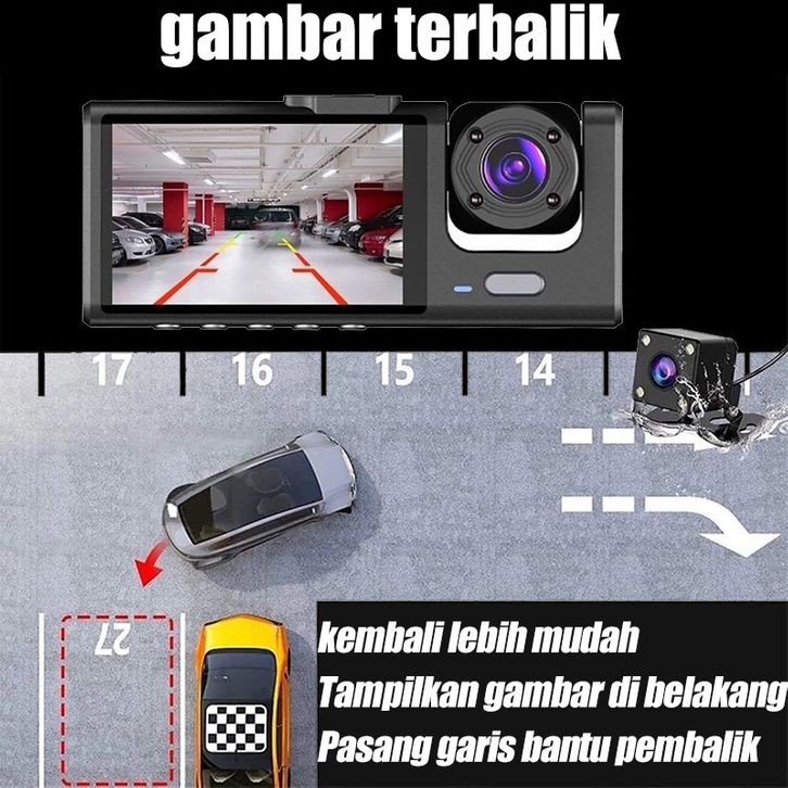 DASHCAM MOBIL 3 LENS DASH CAM 32G HD 1080P KAMERA PARKIR KAMERA DASHCAM LENSA PEREKAMAN LOOP 24 JAM PEMANTAUAN PARKIR OR
