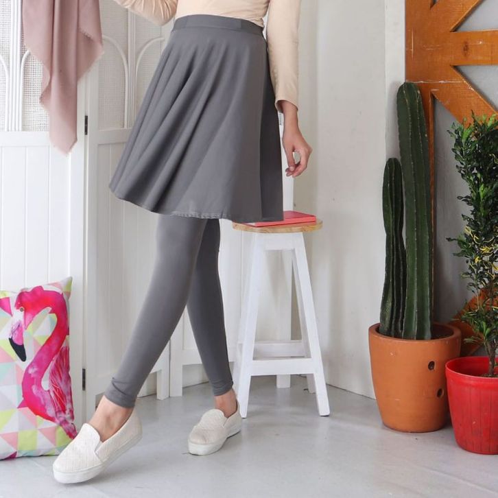 Legging Rok Selutut Sport Cewek Untuk Olahraga Yoga Zumba Senam Motif Polos Anti Robek Slimfit Standar Jumbo