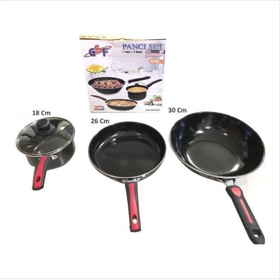 TERLARISSS PANCI SET ENAMEL GSF G-2630 FRYPAN TUTUP KACA WAJAN WOK DAN SAUCEPAN