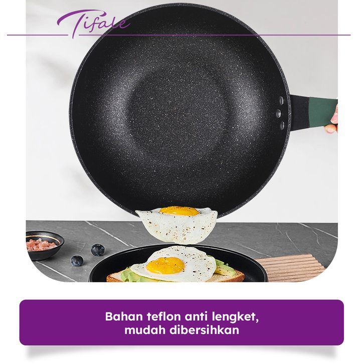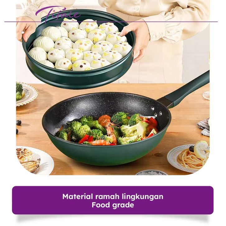 TIFALE [3IN1] WAJAN WOKPAN + STEAMER 32 CM BAHAN BATU MEDIS ANTI LENGKET HIJAU PREMIUM PANCI PENGGORENGAN