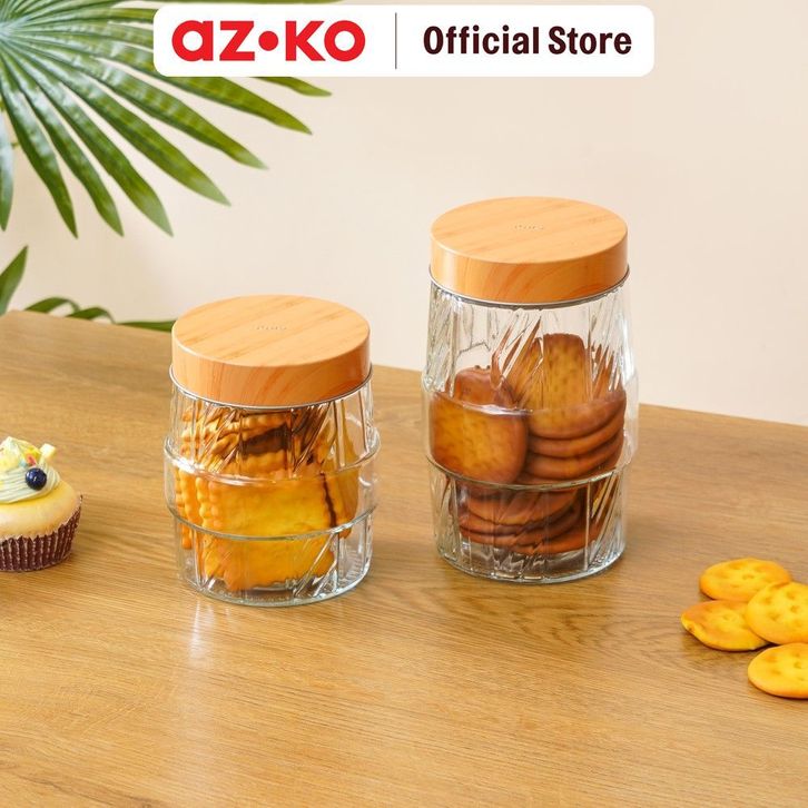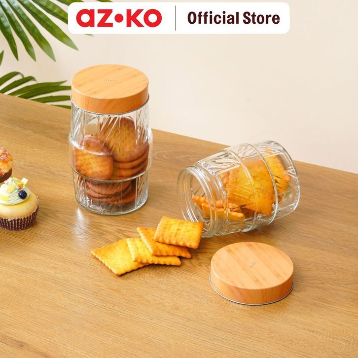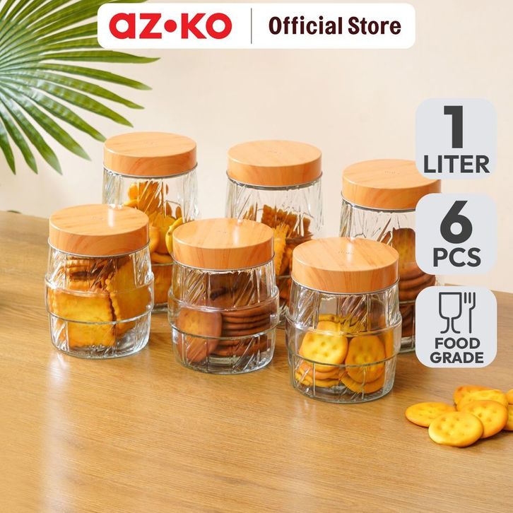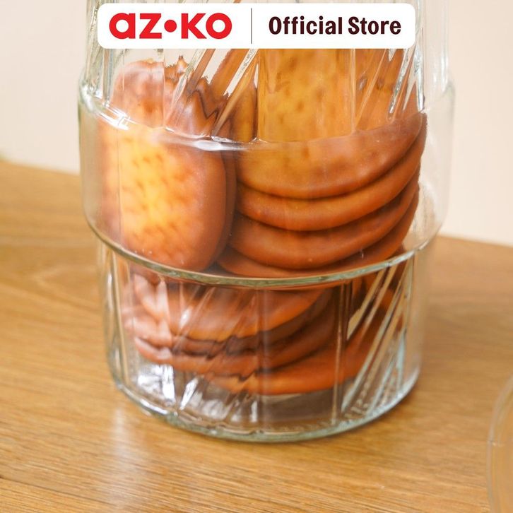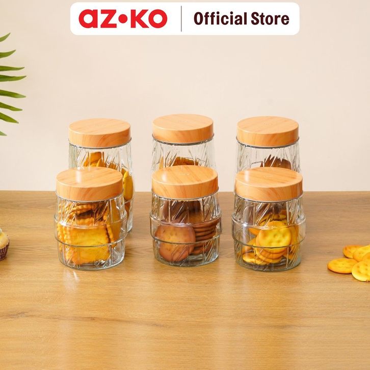 Toples Kaca AZKO Picas Set 6 Pcs Line Cutting Transparan Jar Tempat Simpan Snack Dan Permen Serbaguna