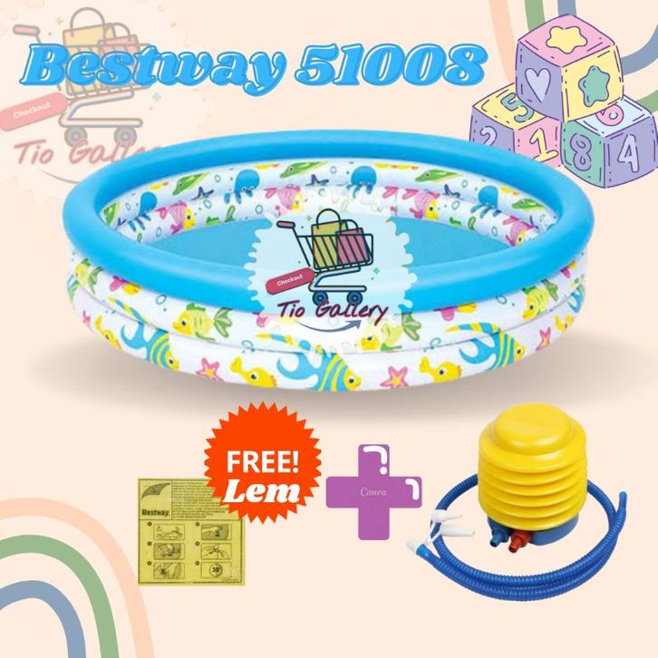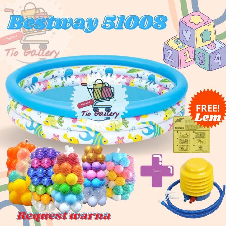 Kolam Renang Anak Mandi Bola Bestway 51008 uk 102 x 25cm - Paket Kolam Mandi Bola Free Lem