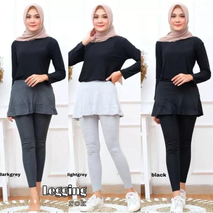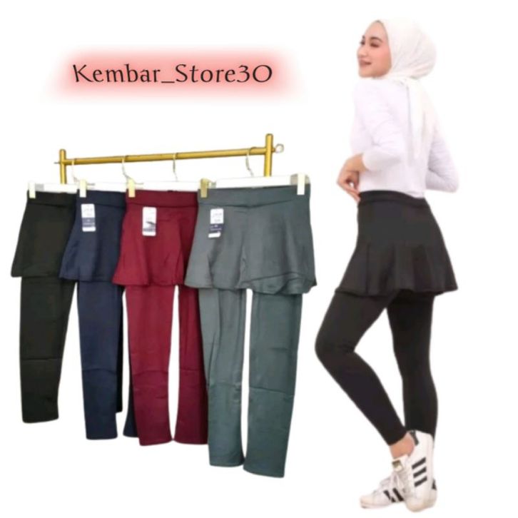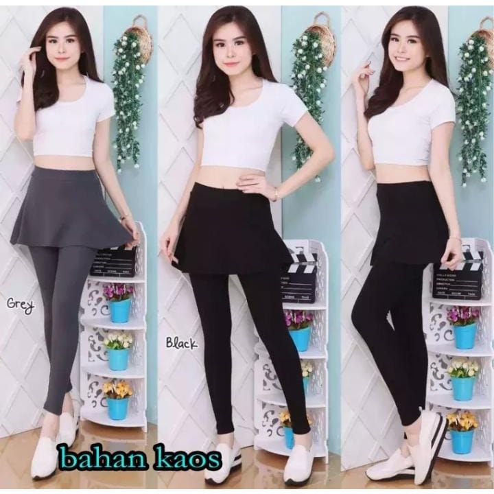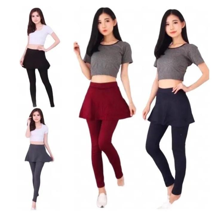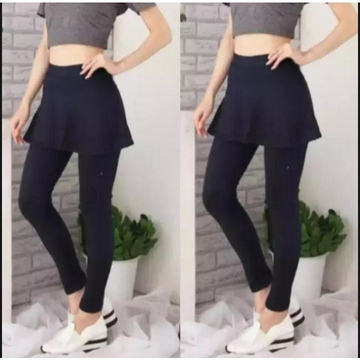 Celana Legging Rok Selutut Sport Untuk Jogging Yoga Senam Motif Polos Korean Style Anti Robek Slimfit Standar Jumbo Adem