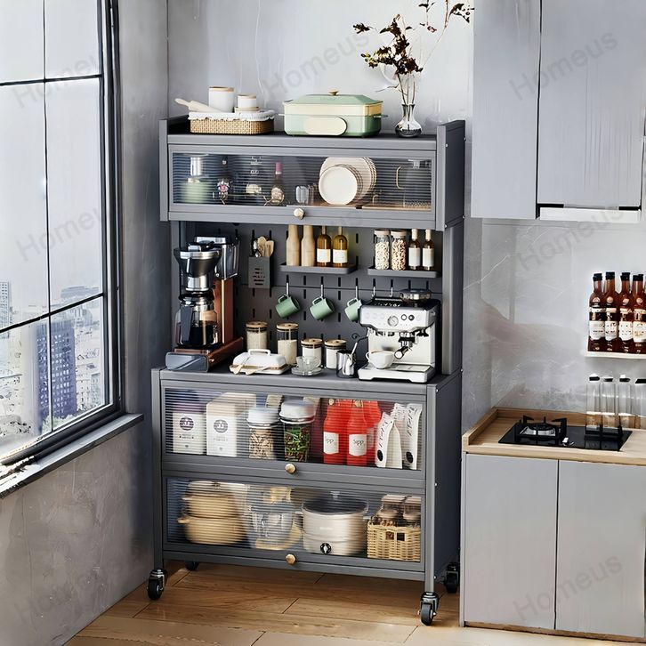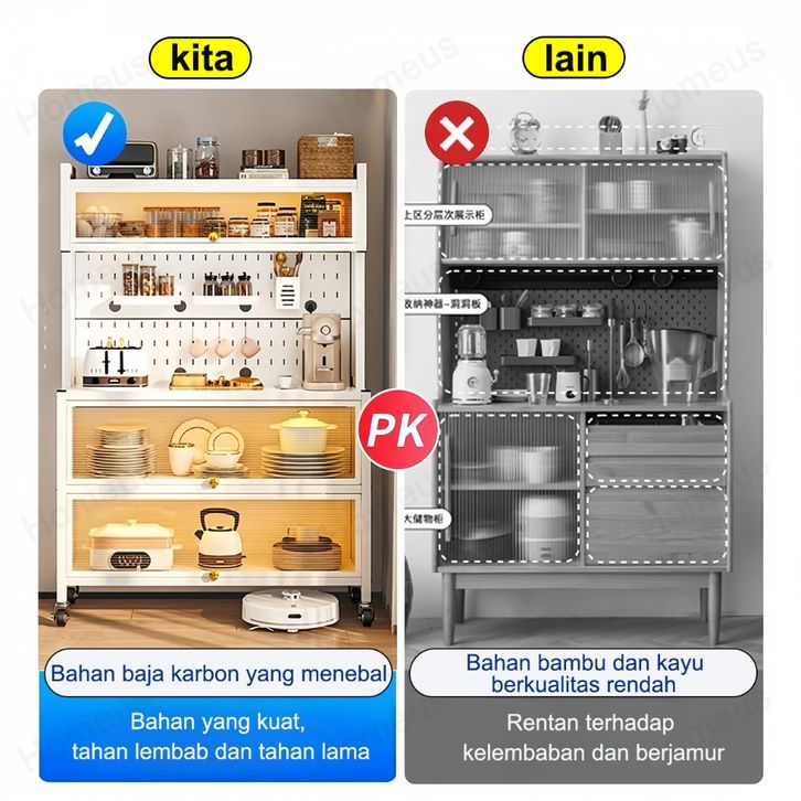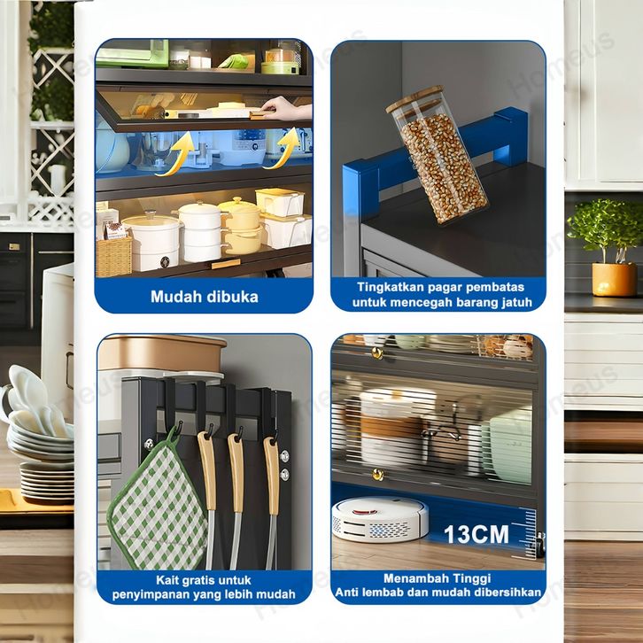 Homeus Lemari Dapur Minimalis Rak Dapur Serbaguna Rak Oven Microwave kabinet penyimpanan multi-layer oven microwave rak
