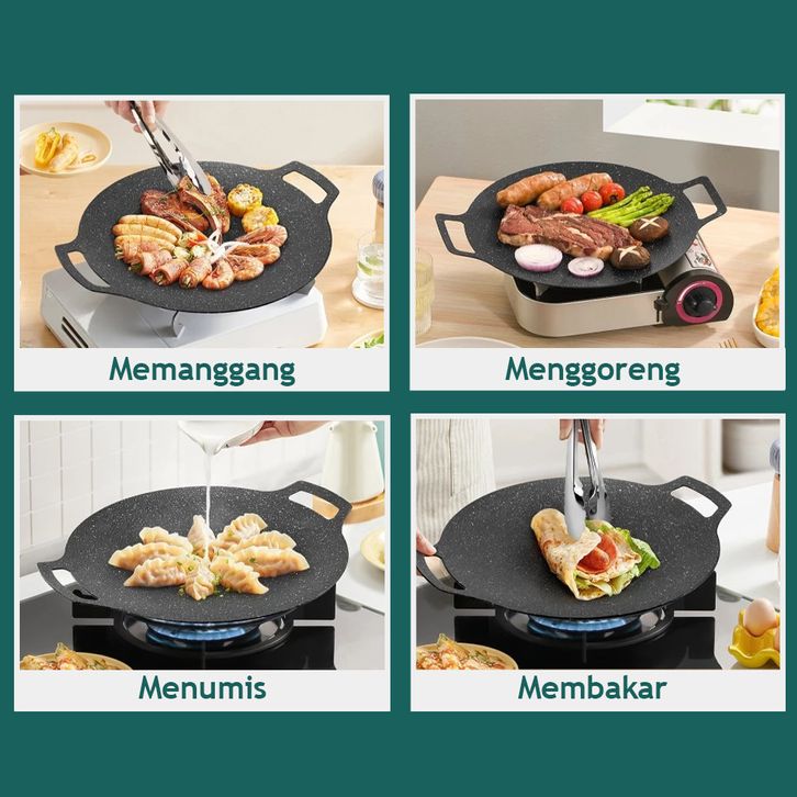 Qiek Wajan Panggangan Grill Pan Panggangan Anti Lengket Alat Panggangan Pemanggang BBQ Nampan Panggangan