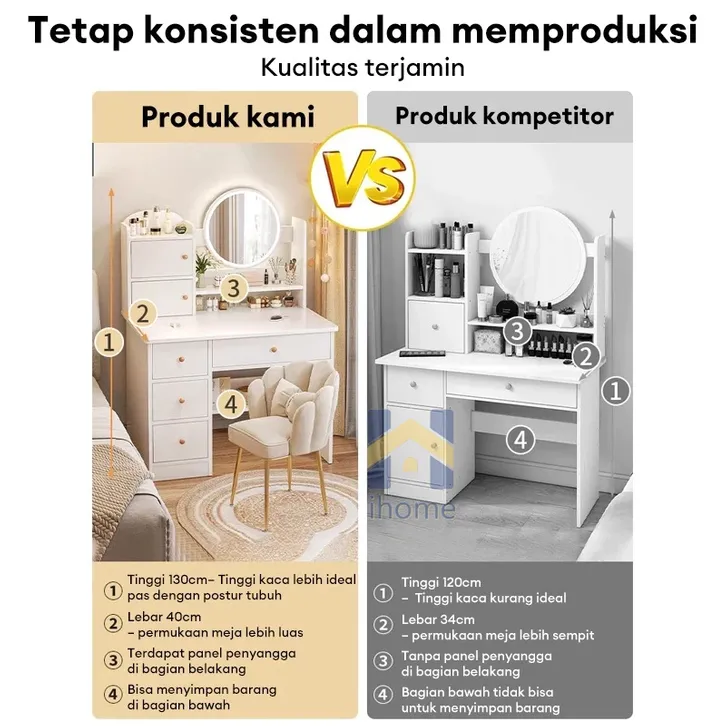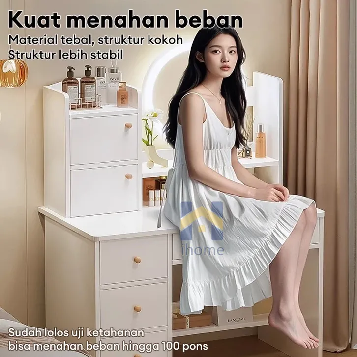 IH Meja Rias dengan lampu LED Meja Rias Putih Kaca Meja Rias Modern Minimalis Meja Rias Oval