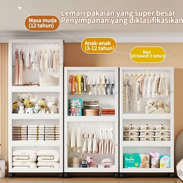 ✨lemari pakaian anak bayi✨78cm lemari plastik jumbo/lemari pakaian plastik gantung laci susun/Laci Plastik dengan pola k