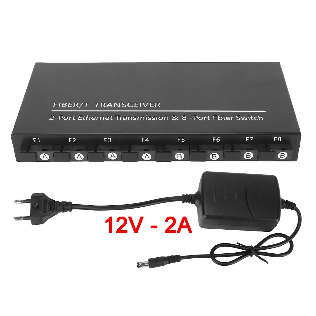 Media Converter 8F2E 8 Port Fiber Optic 2 RJ45 LAN Ethernet Gigabit 2 LAN Rj45 Gigabit 8 Port Optik Optic Transceiver E
