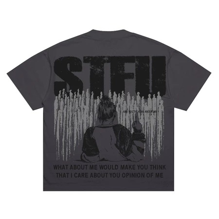 KAOS BOXY OVERSIZED T-SHIRT STFU DARK GRAY UNISEX COTTON COMBED 20S KAOS COWOK PAKAIAN PRIA KEKINIAN BAJU PRIA TERBARU