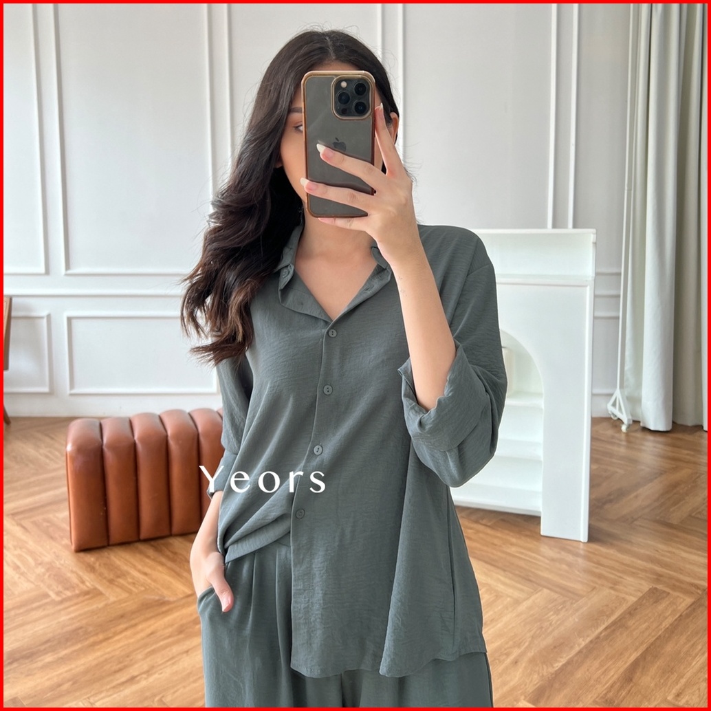 Yeors - Zoya Premium Crinkle Shirt - Baju Atasan Kemeja Wanita Murah Berkualitas - Korean Loose Blouse - Loungewear - Ke