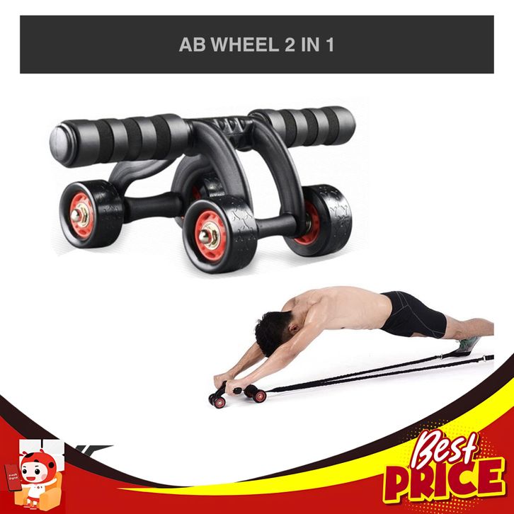 AB WHEEL/DOUBLE WHEEL ABS ROLLER RODA 4 ALAT BANTU GYM FITNESS PUSH UP BAR