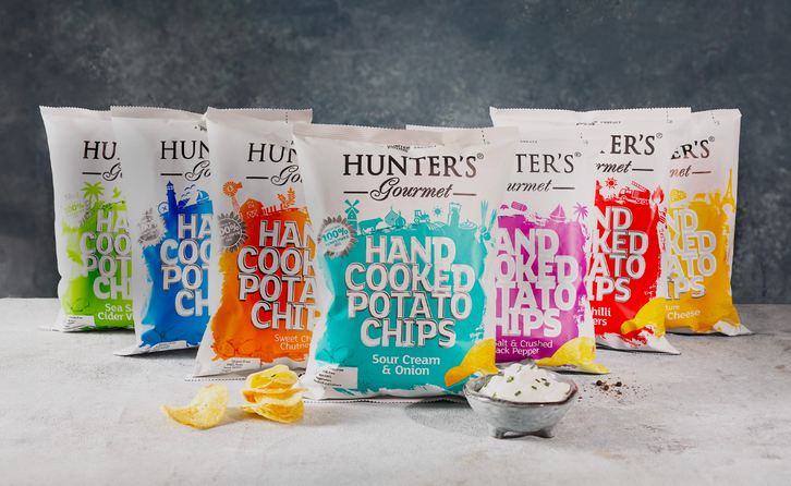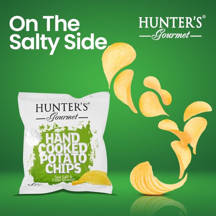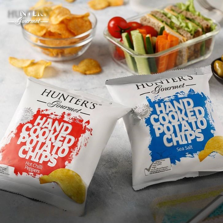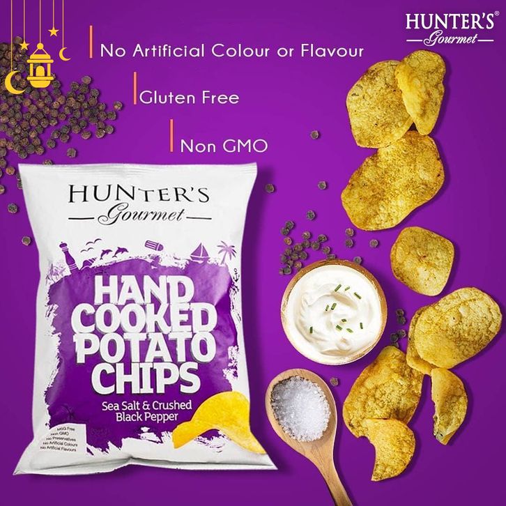 Snack impor Dubai Hunter’s: chips gourmet Sea Salt, Vinegar, BBQ, Sour Cream, Snap Pea, Veggie, Foie Gras