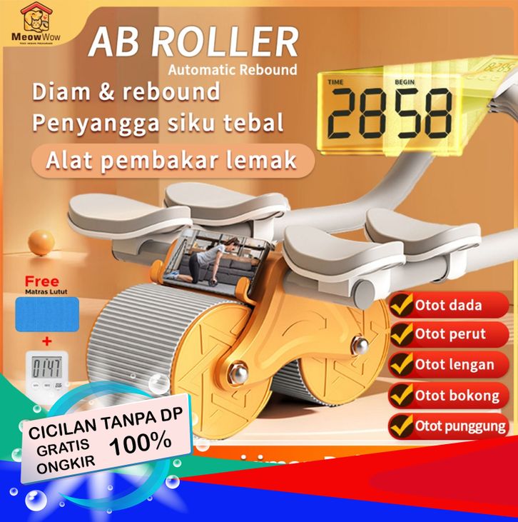 ME Ab Wheel Ab Roller Wheels Plank Trainer 2in1 Abdominal Core Roller Automatic Rebound Olahraga Push Up Gym Fitness