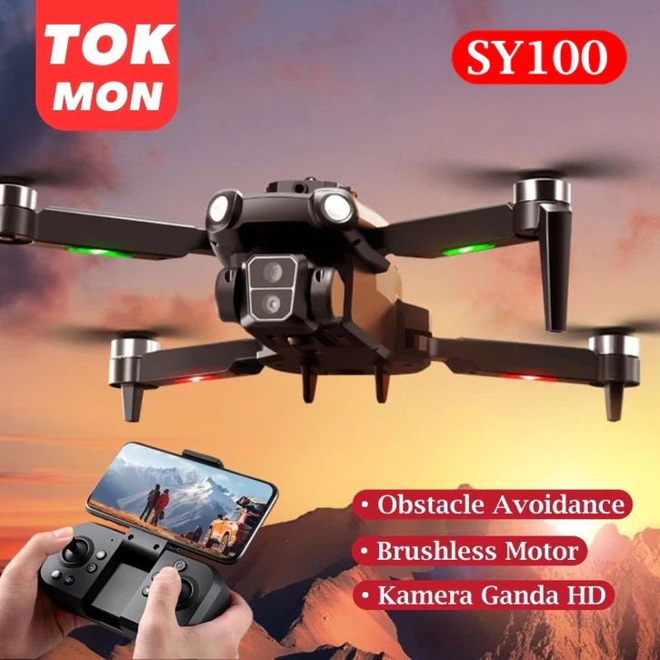 Drone SY100 Profesional 4K Dengan Kamera Ganda 5G WIFI Smart Obstacle Avoidance FPV Motor Brushless