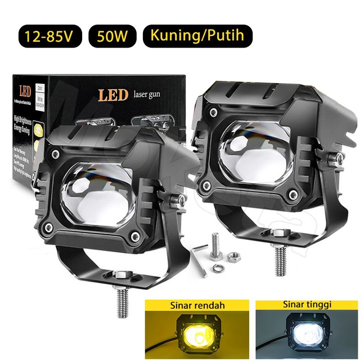 Lampu Kabut Motor 2PC Lampu Tembak Laser D2 Led 50 Watt 12-85V 2 Warna Putih Kuning Superbright Lampu kabut